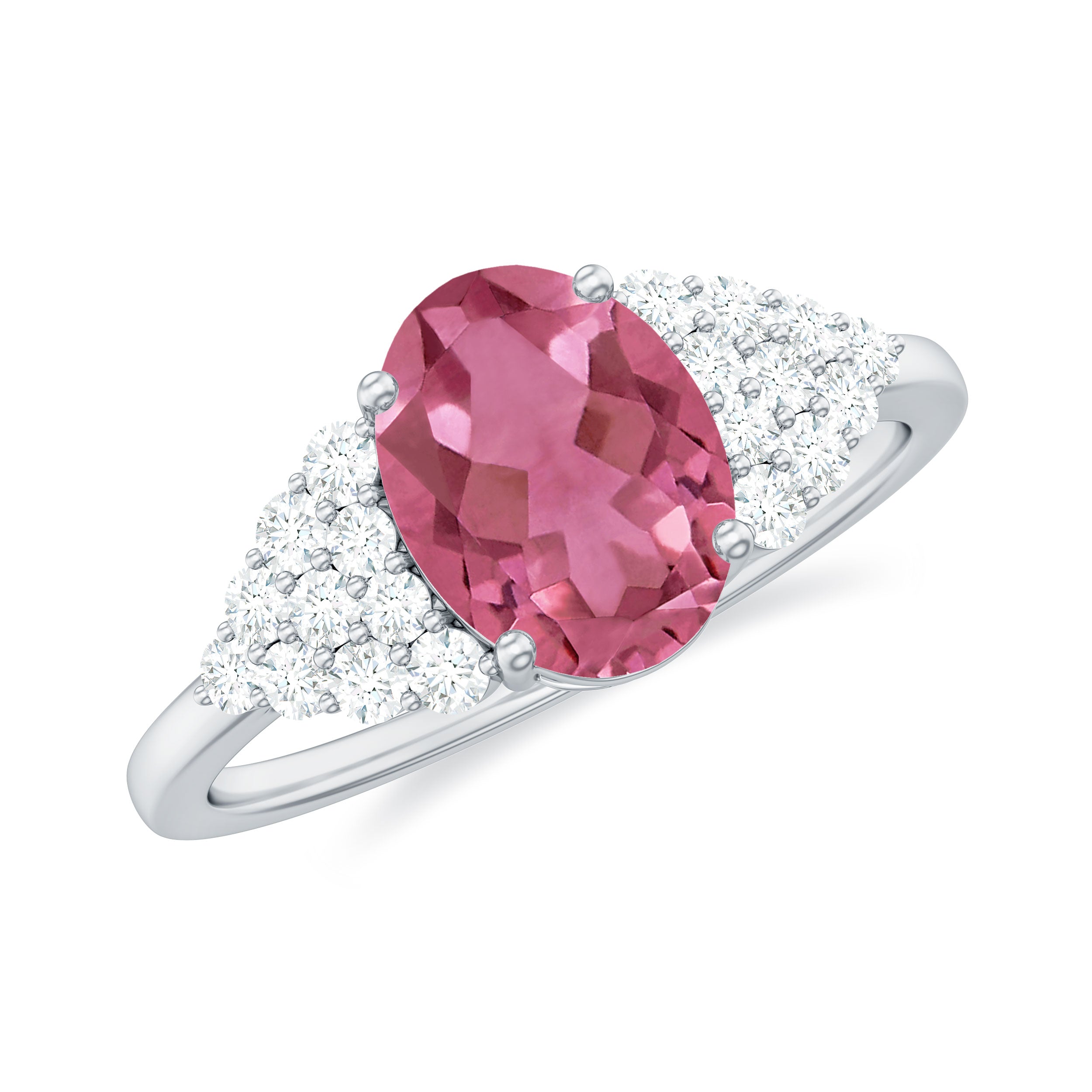 Classic Pink Tourmaline Solitaire Ring with Diamond