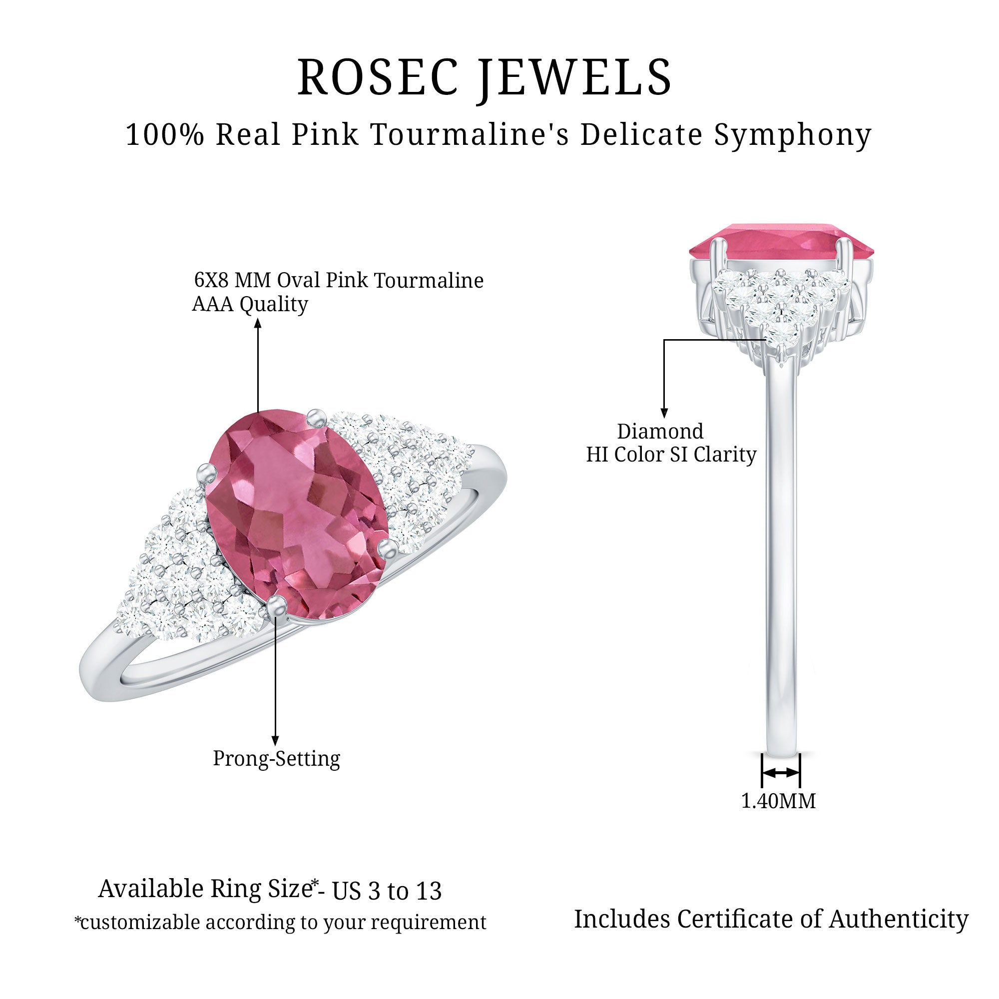 Elevate your style with this Classic Pink Tourmaline Solitaire Ring. Sparkling Diamond accentuates its timeless elegance and charm.