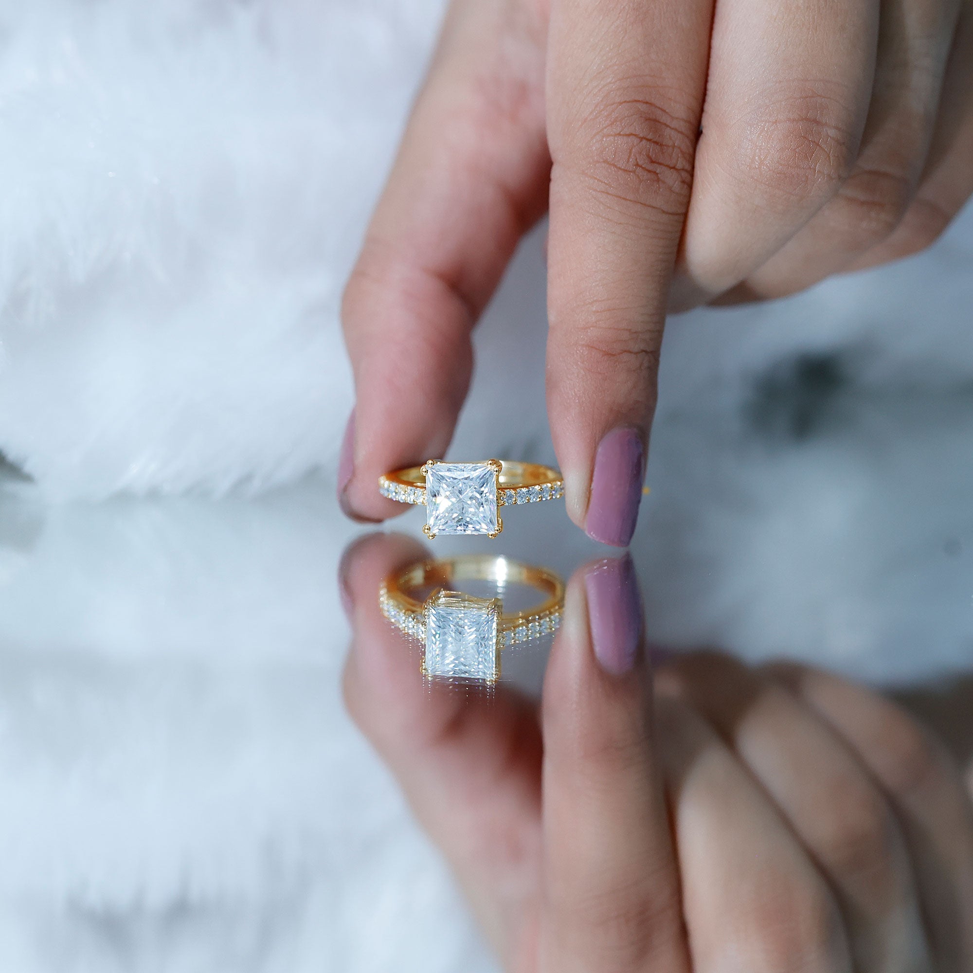 Classic Princess Cut Moissanite Solitaire Engagement Ring with Side Stones
