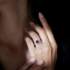 Elevate your proposal with this Classic Engagement Ring, encircled by a brilliant Moissanite Halo. The 7 MM Amethyst takes center stage, captivating with its deep purple hue. Moissanite gems surrounding the amethyst create a dazzling contrast, adding brilliance and opulence. This ring is a timeless blend of elegance and modern luxury, making it an ideal choice for declaring your love and commitment in style.