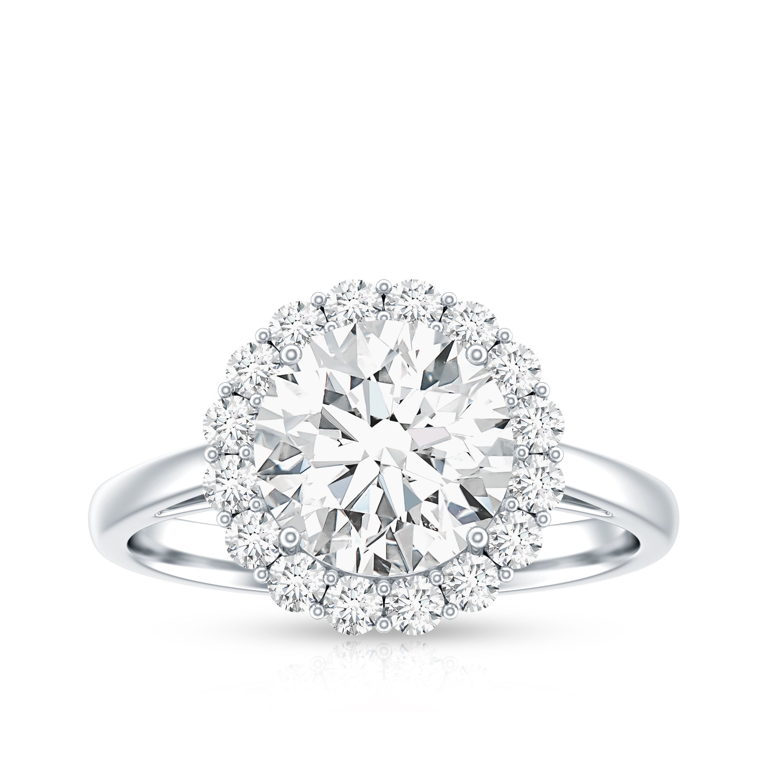 Start your forever with the stunning Moissanite Halo Engagement Ring, a beautiful piece made to celebrate your love in its truest form. At the center of this classic design is an 8 MM round cut moissanite, securely held in prong setting and surrounded by a shining halo of smaller moissanite stones. This halo not only enhances the center stones sparkle and brilliance but also adds a touch of elegance, making this Round Engagement Ring a memorable symbol of commitment. Designed for those who appreciate elegance with a purpose, this Moissanite Engagement Ring merges the beauty of traditional design with the glow of sustainable gemstones. The simple band allows the halo and center stone to shine, while still providing a comfortable fit for daily wear. Whether you are planning a lovely proposal or looking to purchase a beloved piece, this Halo Ring delivers a significant message, elegant, radiant, and responsibly made. Available in US ring sizes 3 to 13, this piece guarantees a perfect fit for every bride-to-be. Packaged in a luxurious jewelry box, it is prepared to make the moment unforgettable. Let this 2 Carat Moissanite Ring be the promise you cherish every day.
