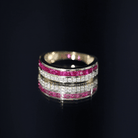 Classic Ruby and Diamond Two Row Half Eternity Band Ring