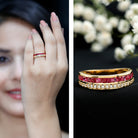 Celebrate the kind of love that isnt defined by any measures with a Ruby Semi Eternity Ring! Bright and bold, it is encrusted with two rows of Princess Cut Ruby and Round Shape Diamond, mounted one above the other half way through the band and held by Prong Setting. Certified for its phenomenal quality, this Ruby Semi Eternity Ring is meant to be treasured for a lifetime.