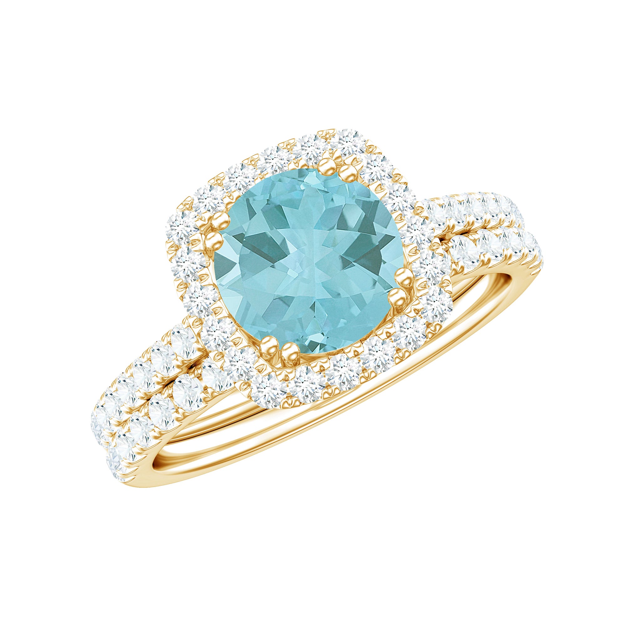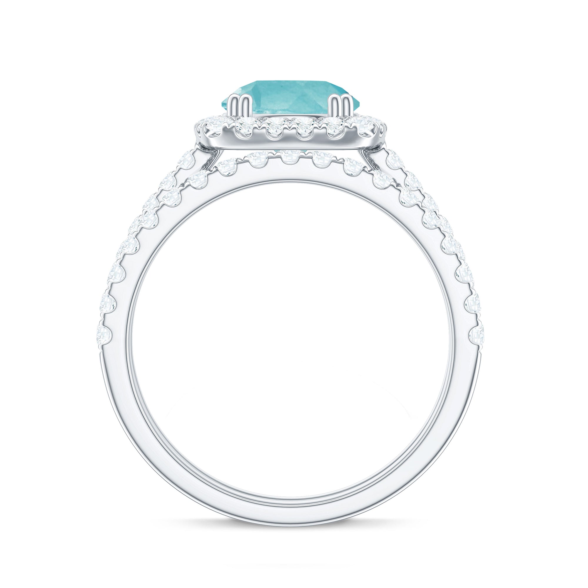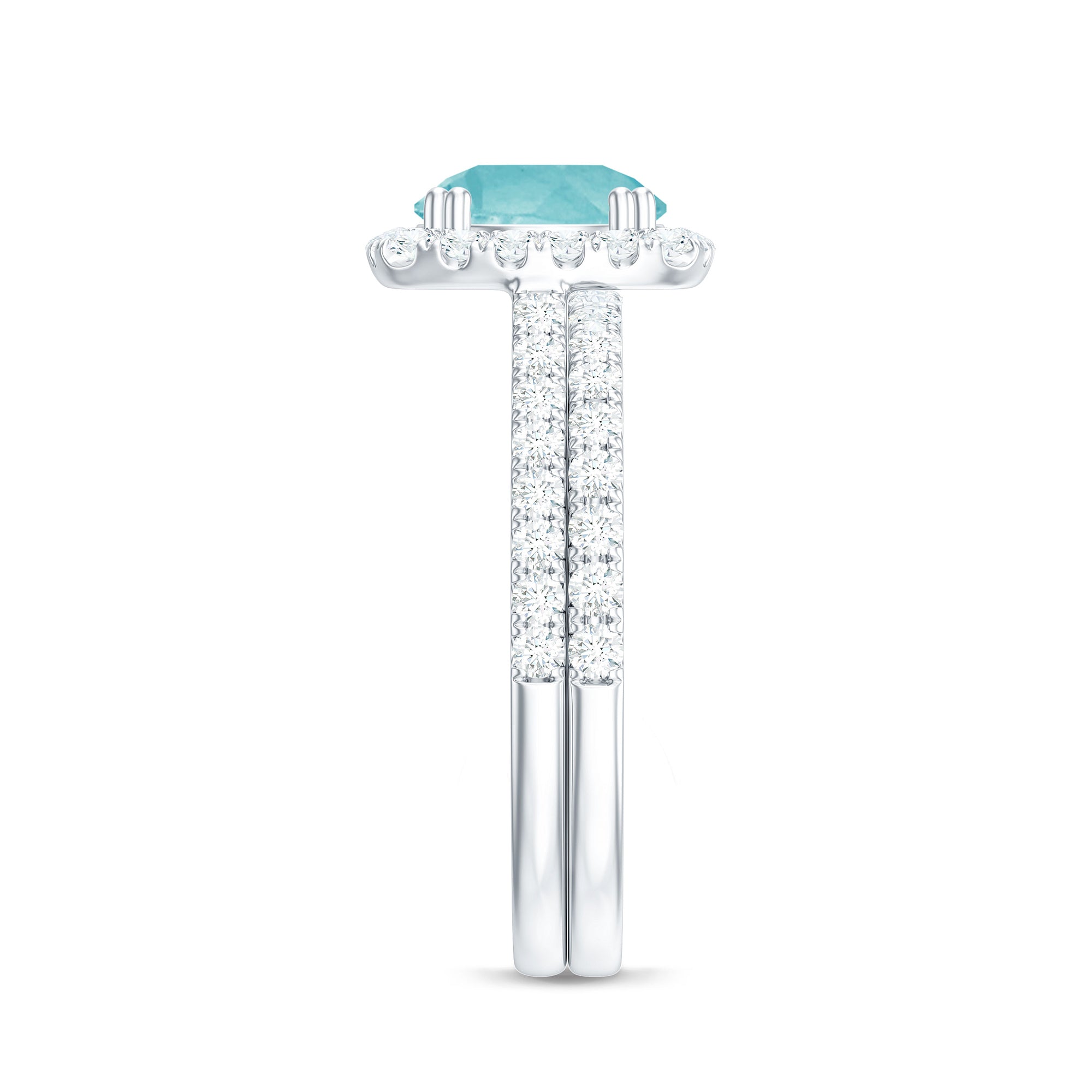 Celebrate timeless beauty with this Classic Sky Blue Ring Set accompanied by shimmering moissanite gemstones, a perfect union of elegance and brilliance.