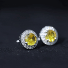Classic Stud Earrings with Lab Grown Yellow Sapphire and Diamond Halo