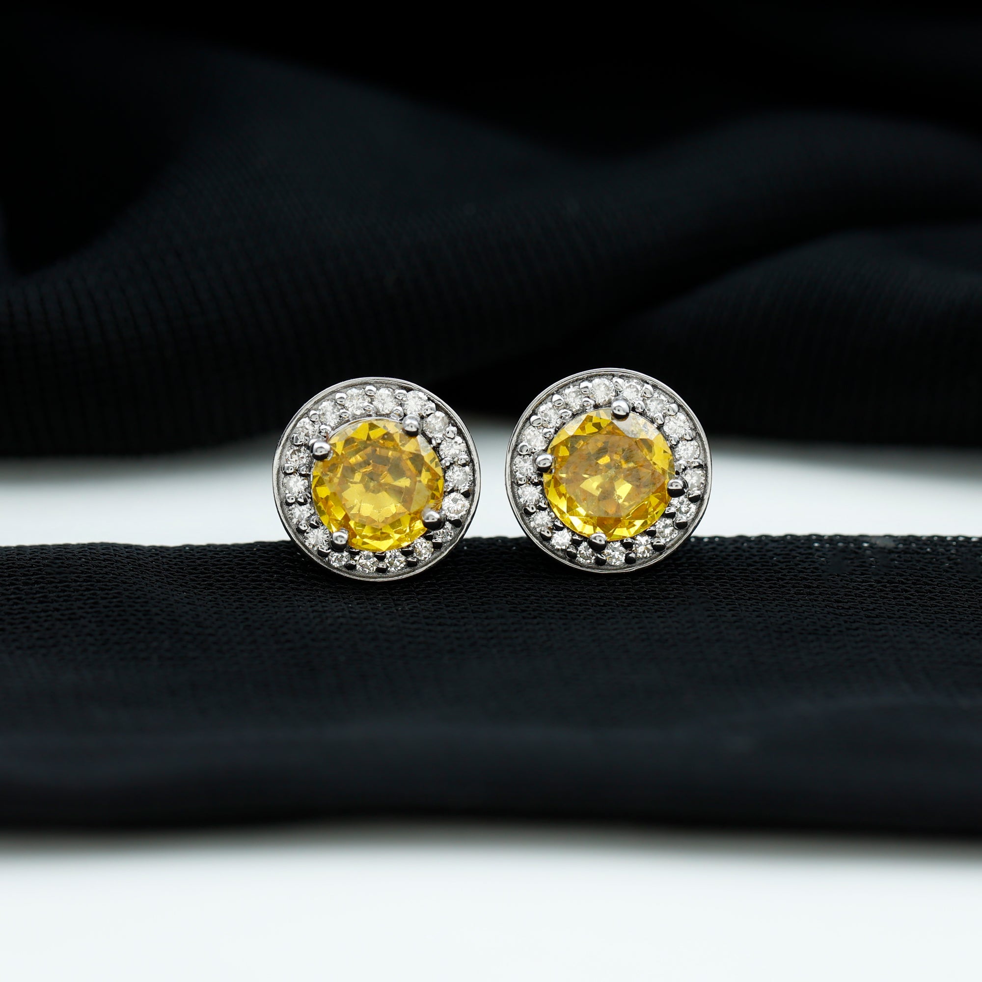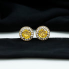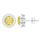 Classic Stud Earrings with Lab Grown Yellow Sapphire and Diamond Halo
