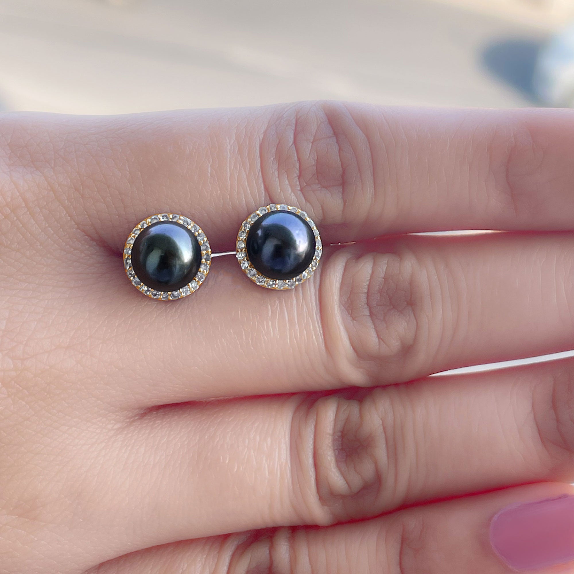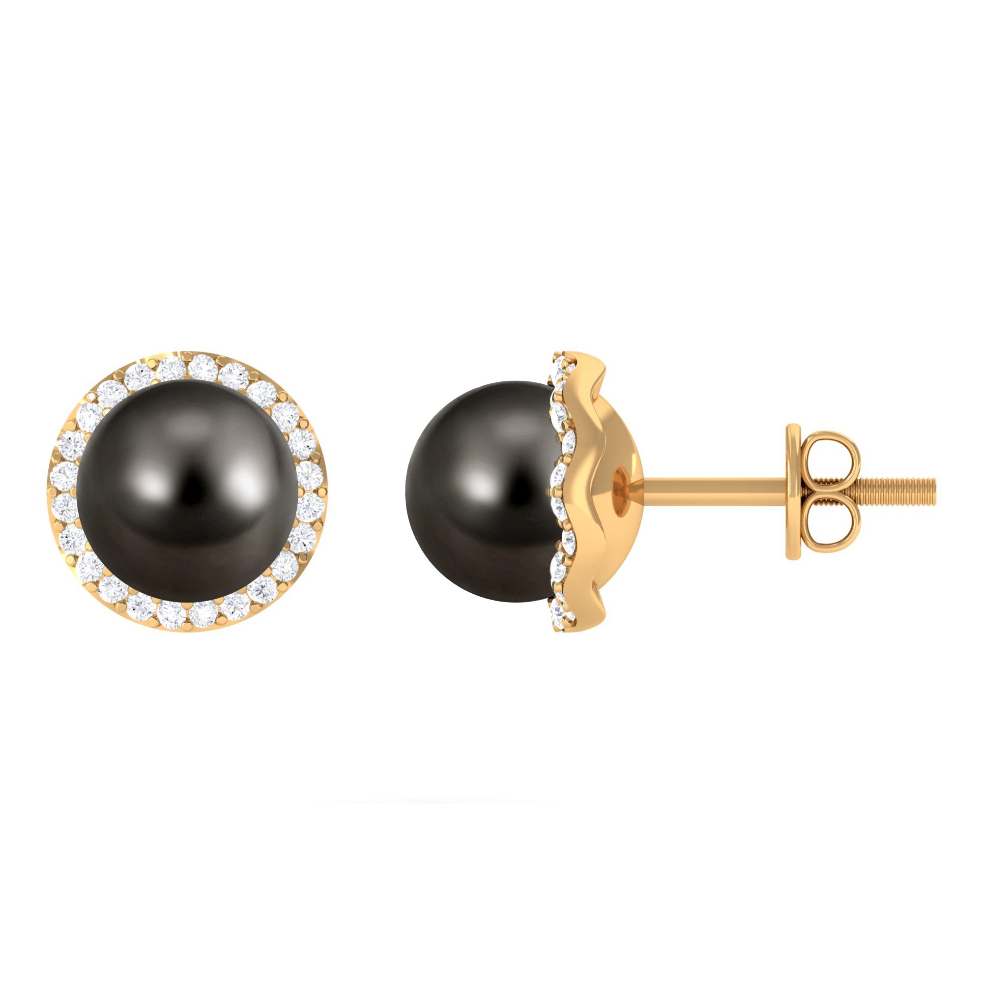 Classic Tahitian Pearl and Diamond Halo Stud Earrings