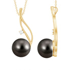 Enrich your jewelry assortment and earn compliments by adding this exquisite Minimal Pendant. The drop pendant features a 10 MM round-shaped Tahitian Pearl set in bead style, adorned with sparkling round Moissanite stones, all enclosed in a solid gold crafted casing. Its a stunning piece of jewelry that will surely catch everyones attention.