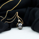 Classic Tahitian Pearl and Moissanite Drop Pendant with Hidden Bail