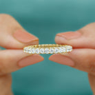 Add some more sparkle to your daily wear with our Classic Full Eternity Ring, adorned with brilliant round Zircon gemstones meticulously set in a shared prong setting, accentuating their timeless beauty. This ring offers versatility with a selection of metal options, allowing you to personalize your piece to match your unique taste and style.