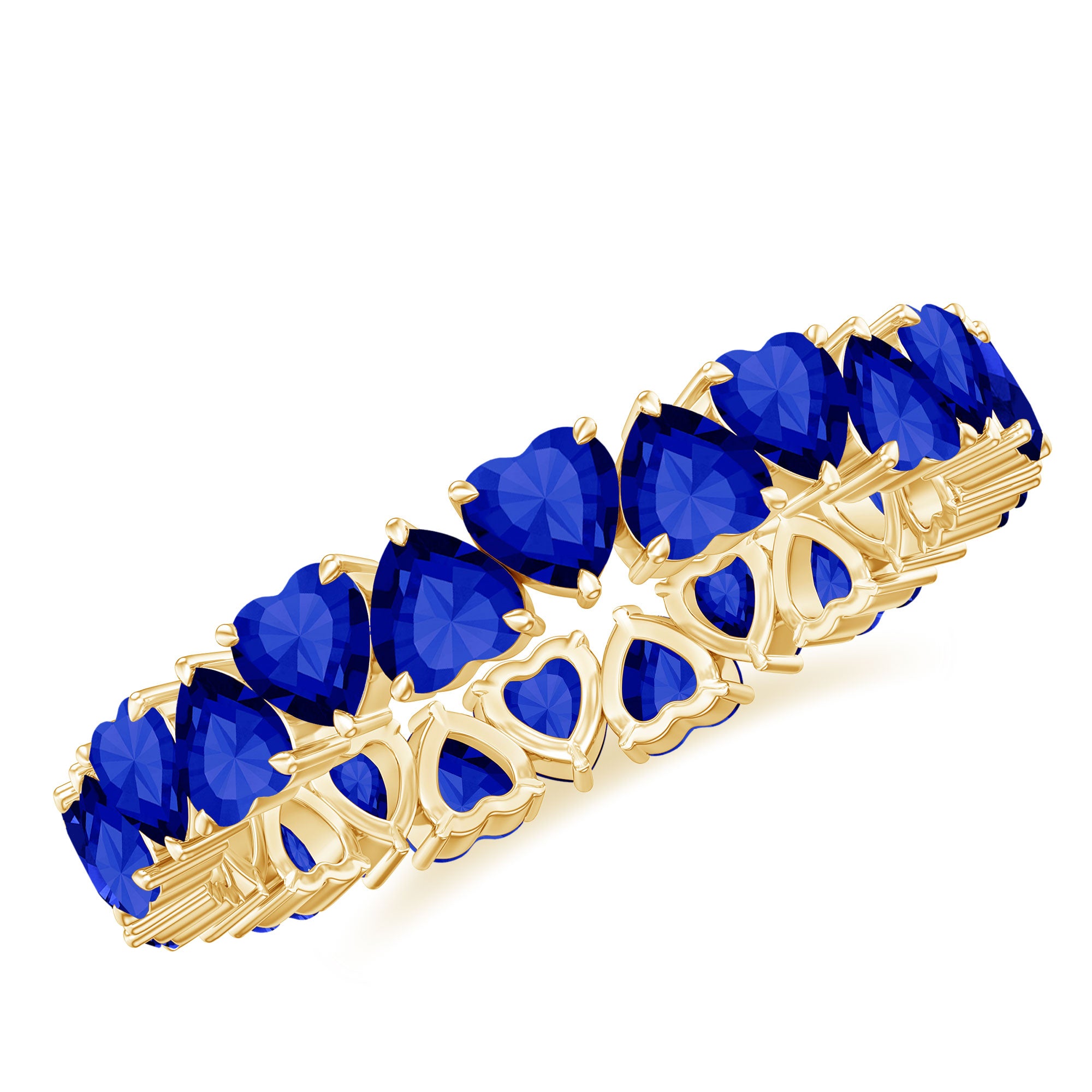 Claw Set Created Blue Sapphire Heart Eternity Band Ring in Gold