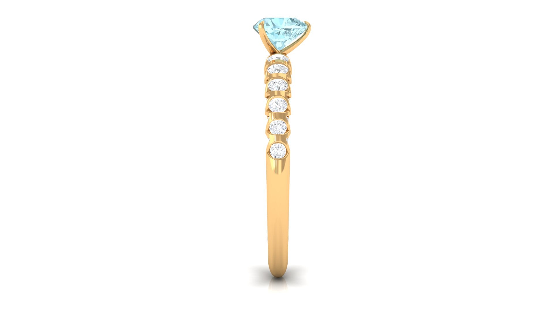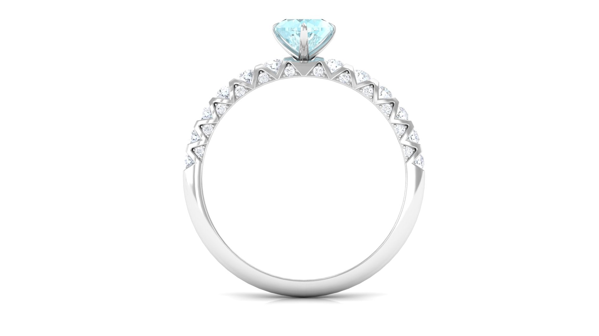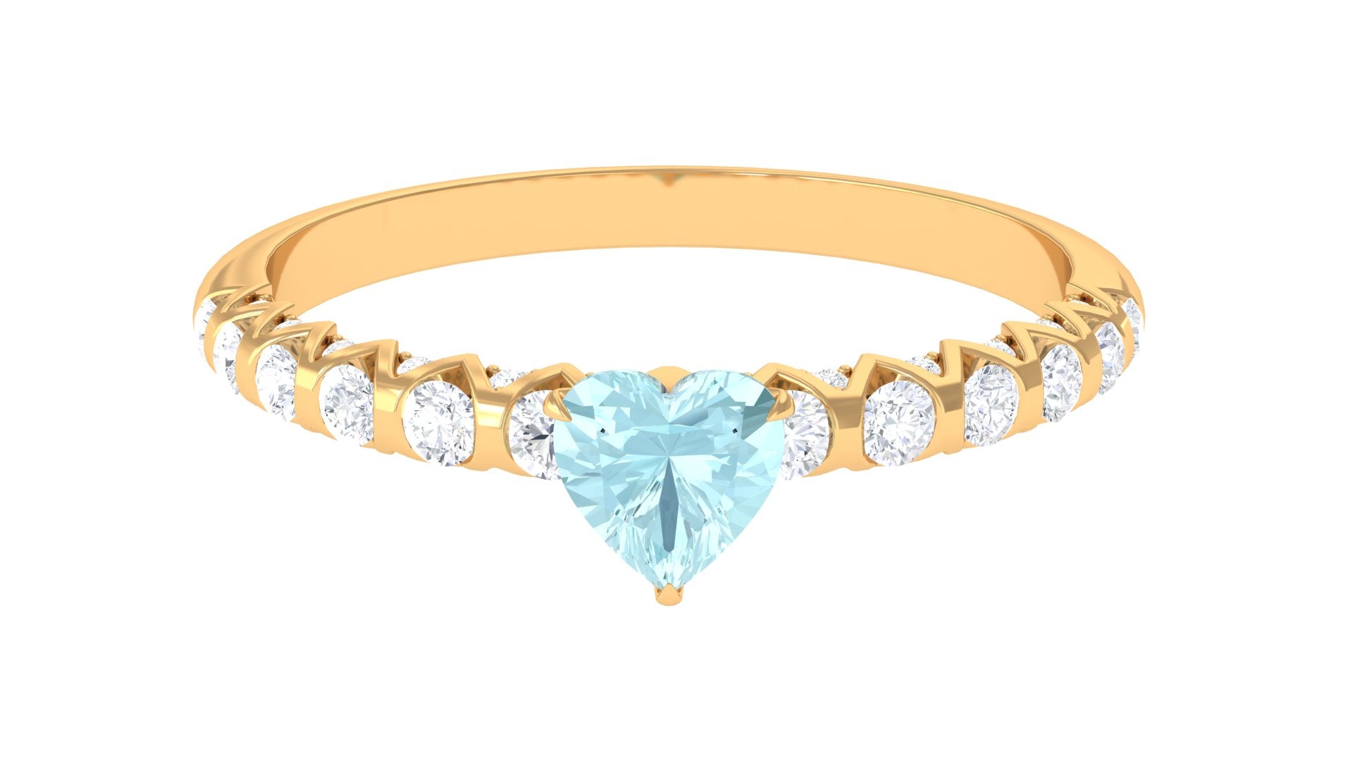 Claw Set Heart Sky Blue Topaz and Diamond Engagement Ring
