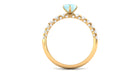 This Heart Engagement Ring is designed in vintage style embellished with Heart Shape Sky Blue Topaz set as a Solitaire in a claw setting and round shape Diamond in the half bezel setting exceptionally for you.