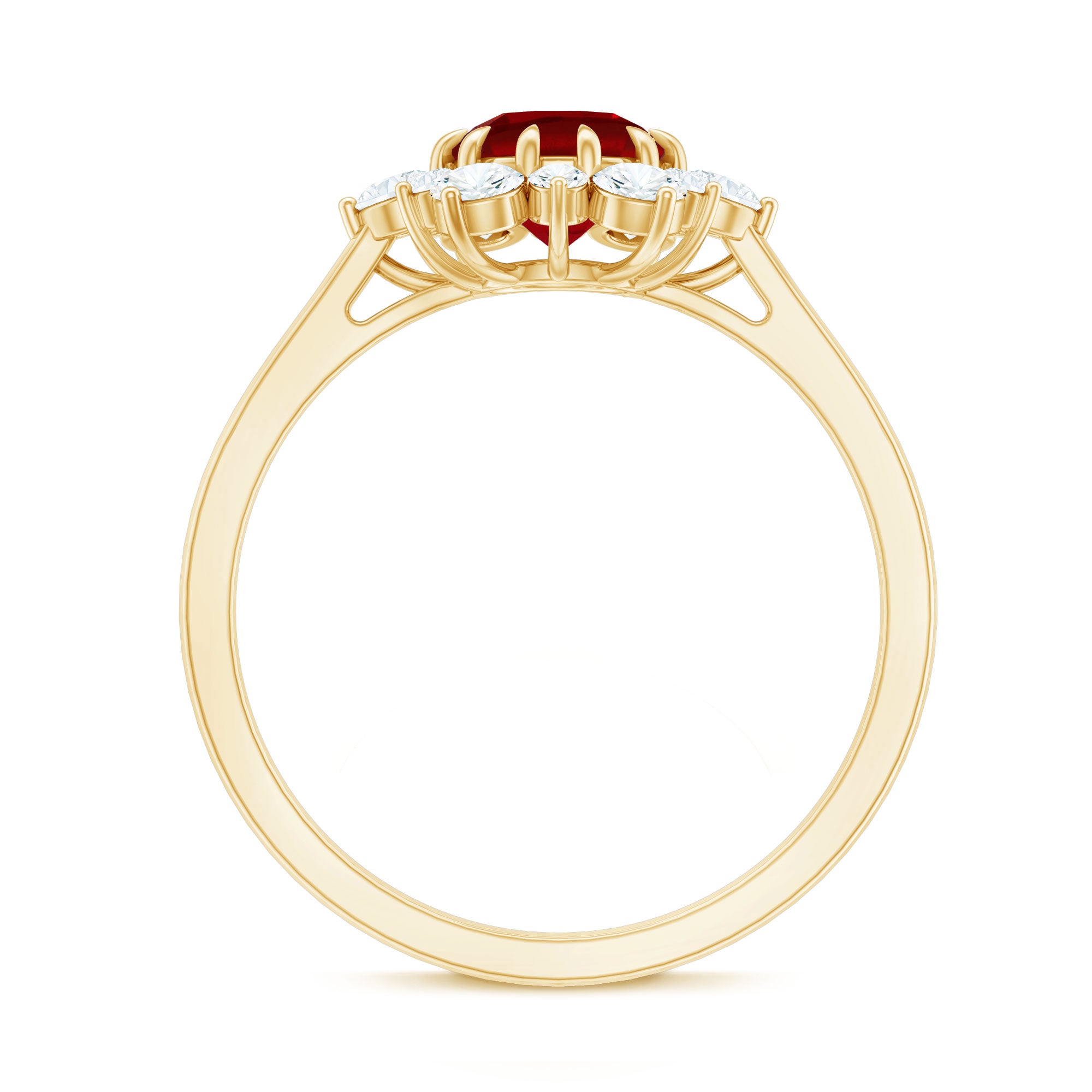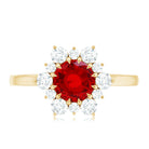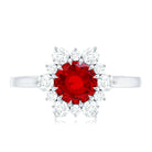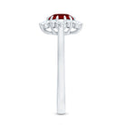 Claw Set Lab Grown Ruby and Diamond Halo Engagement Ring