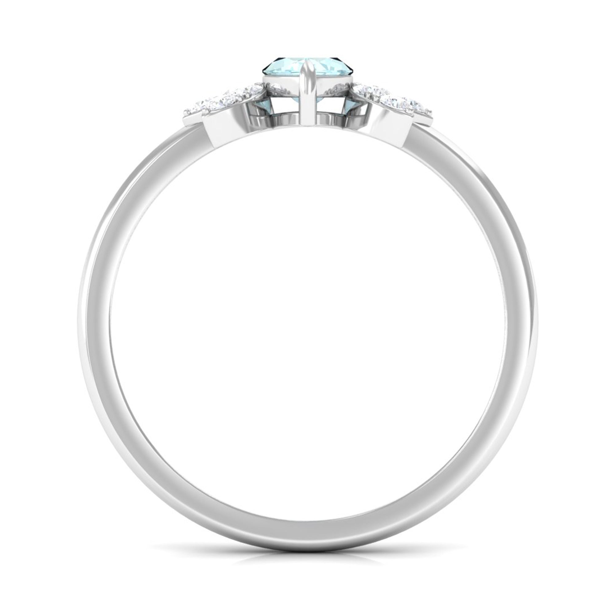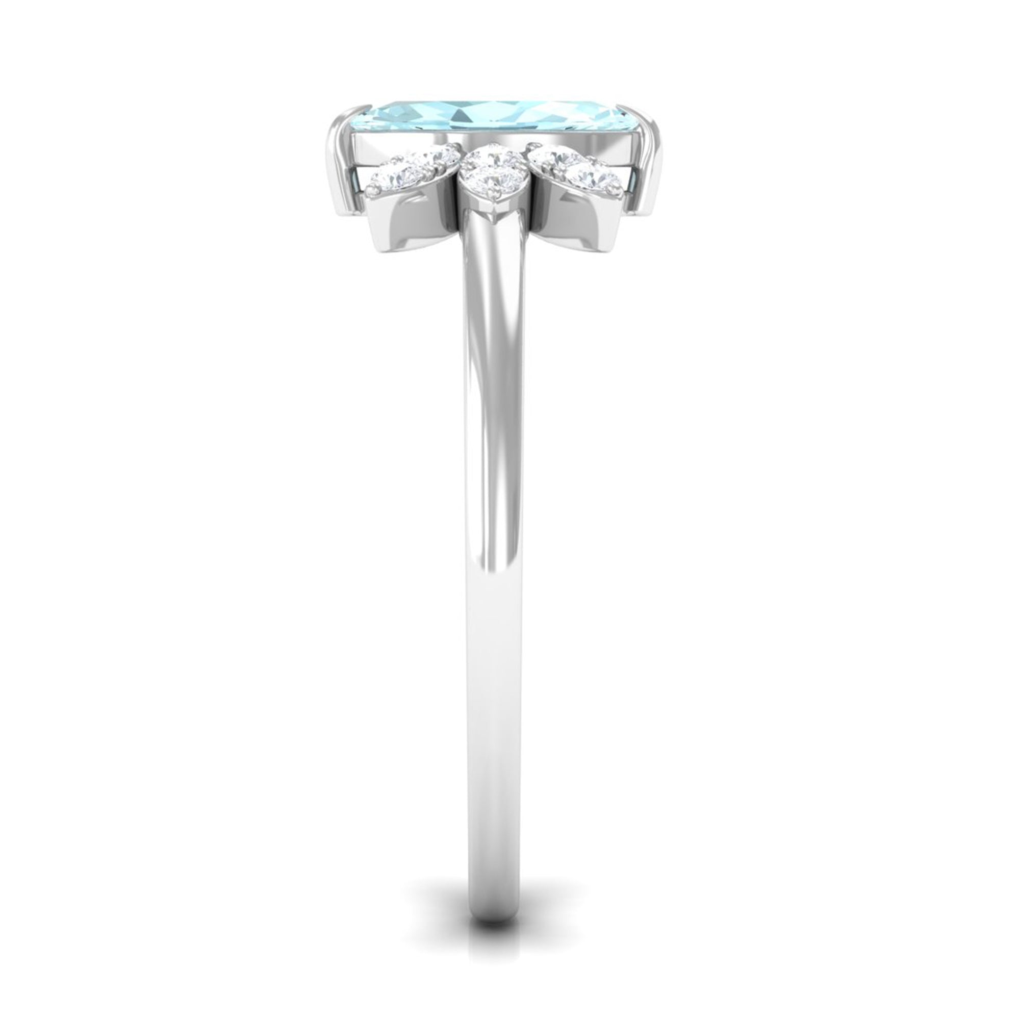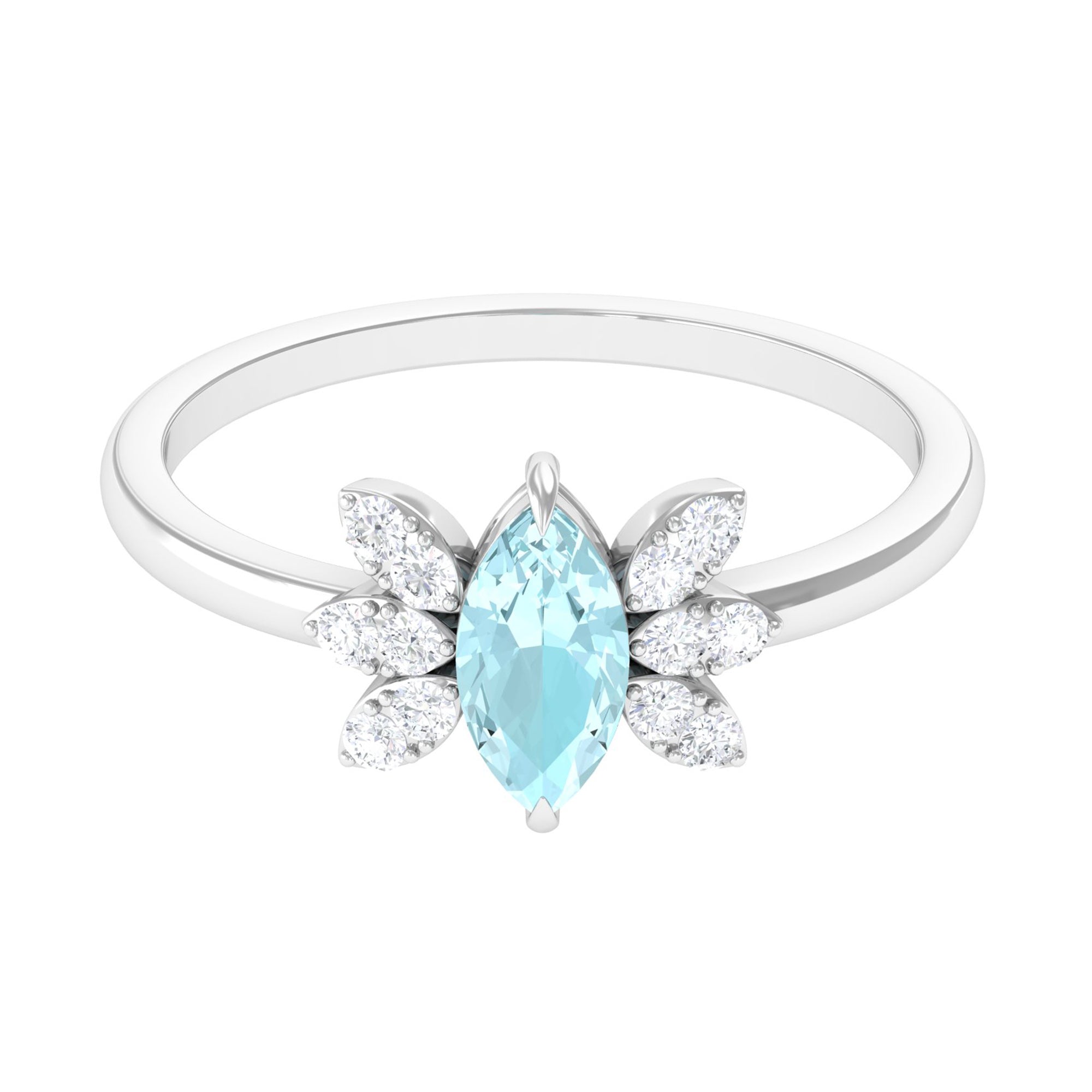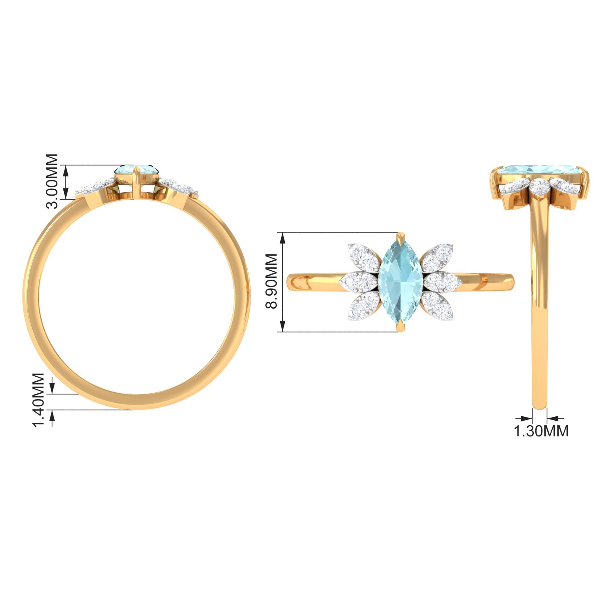 Claw Set Marquise Sky Blue Topaz and Diamond Promise Ring