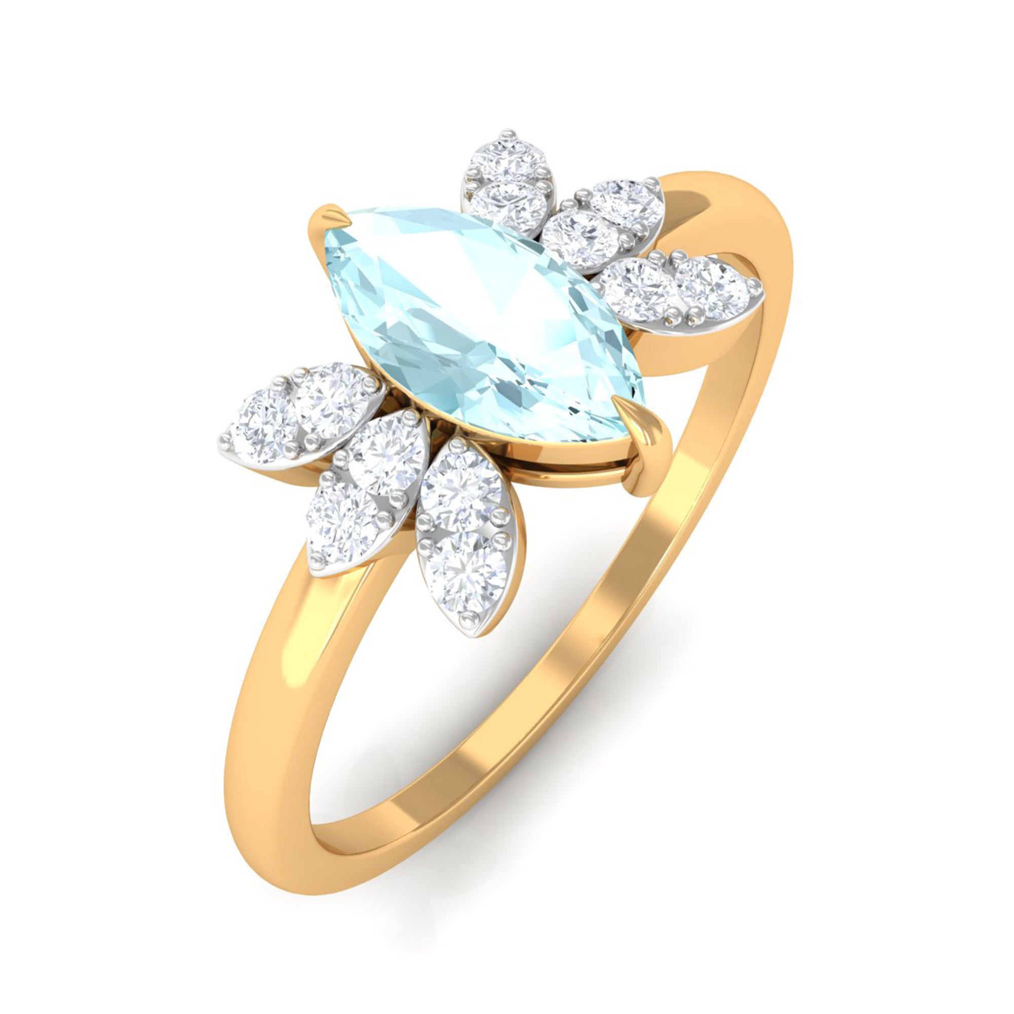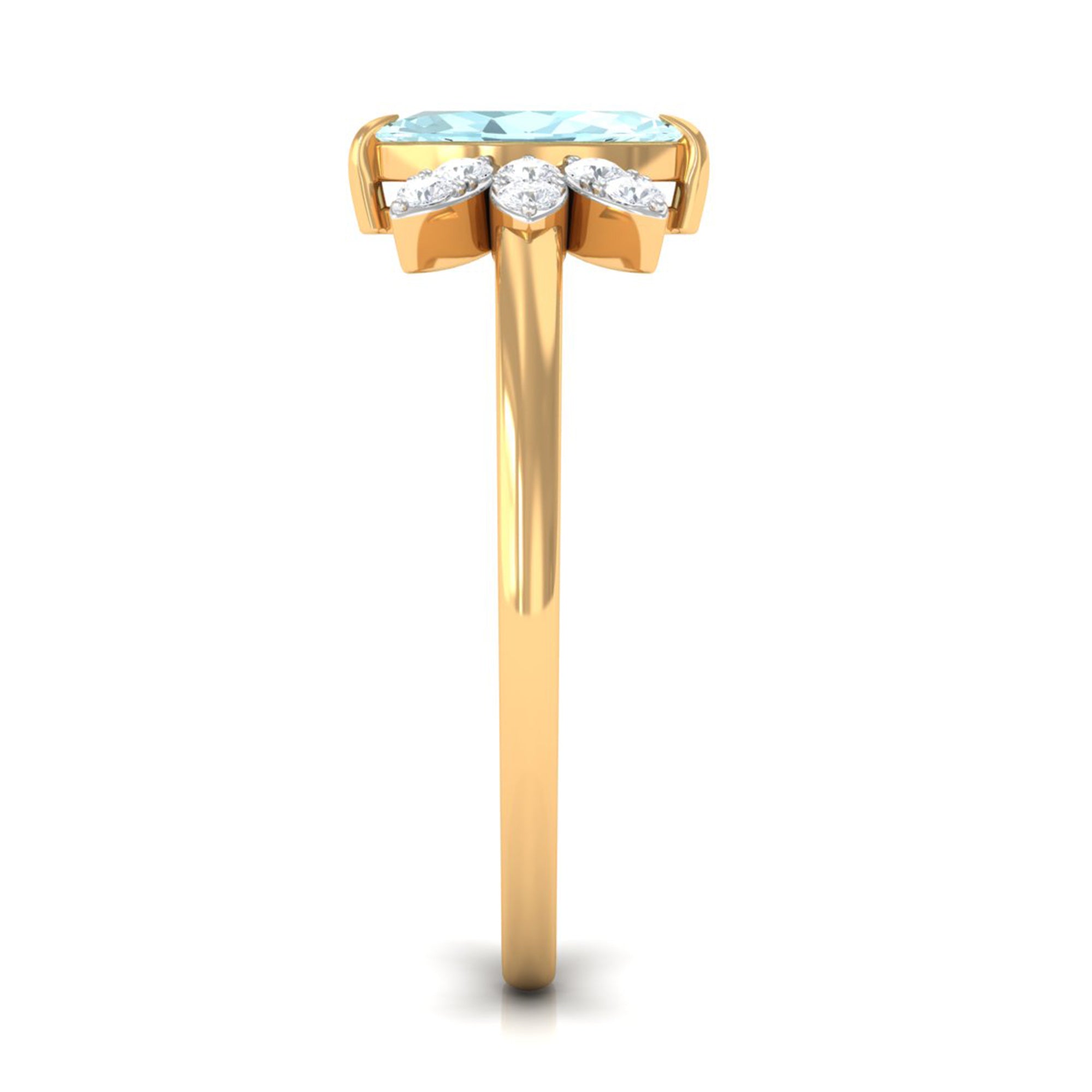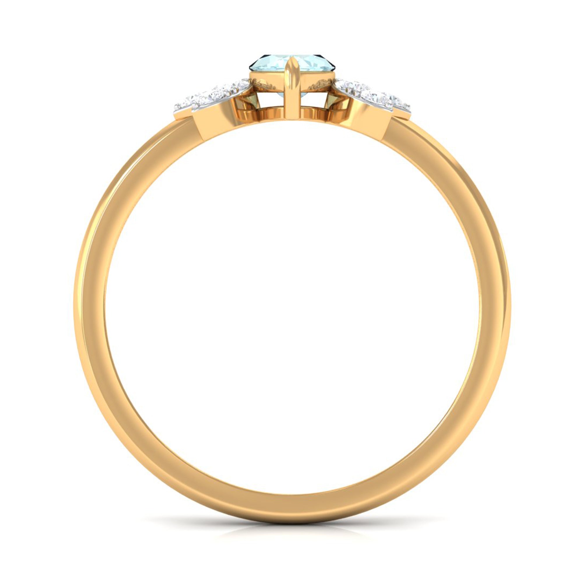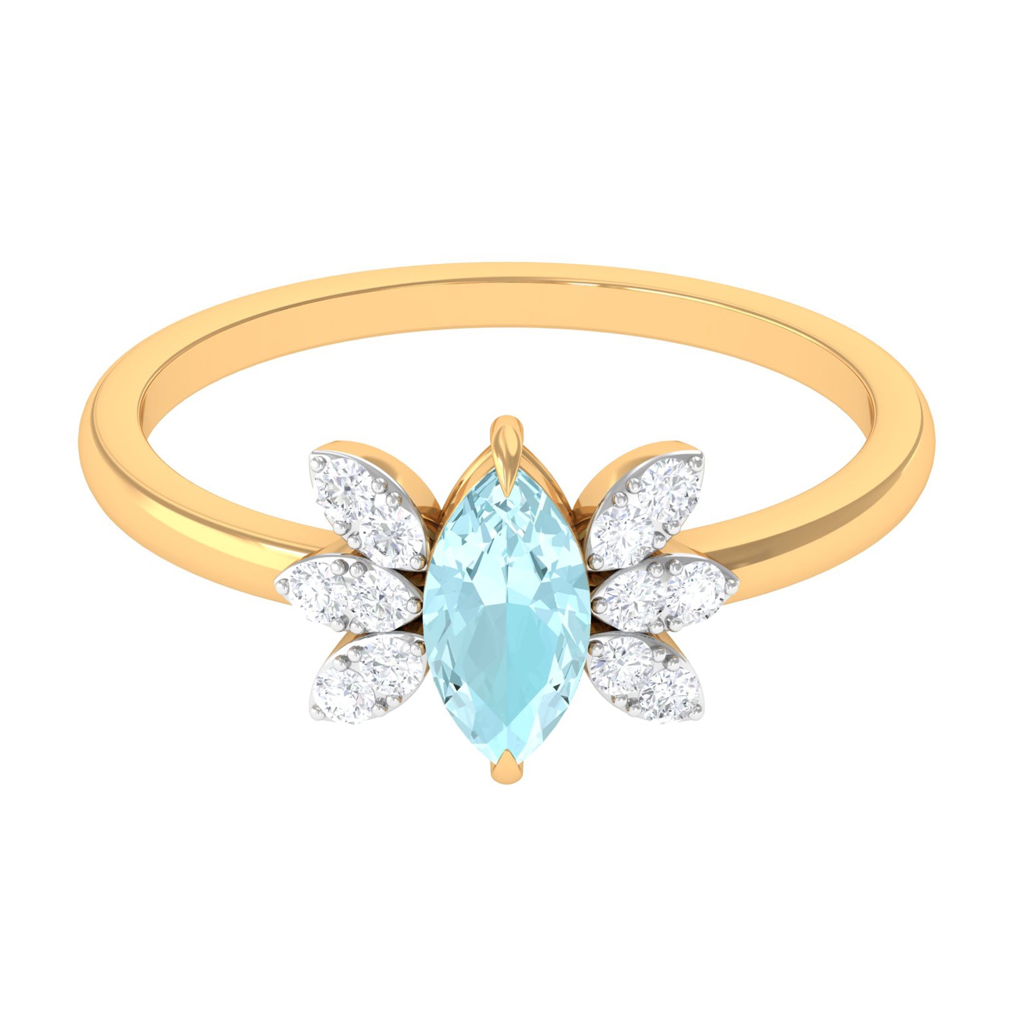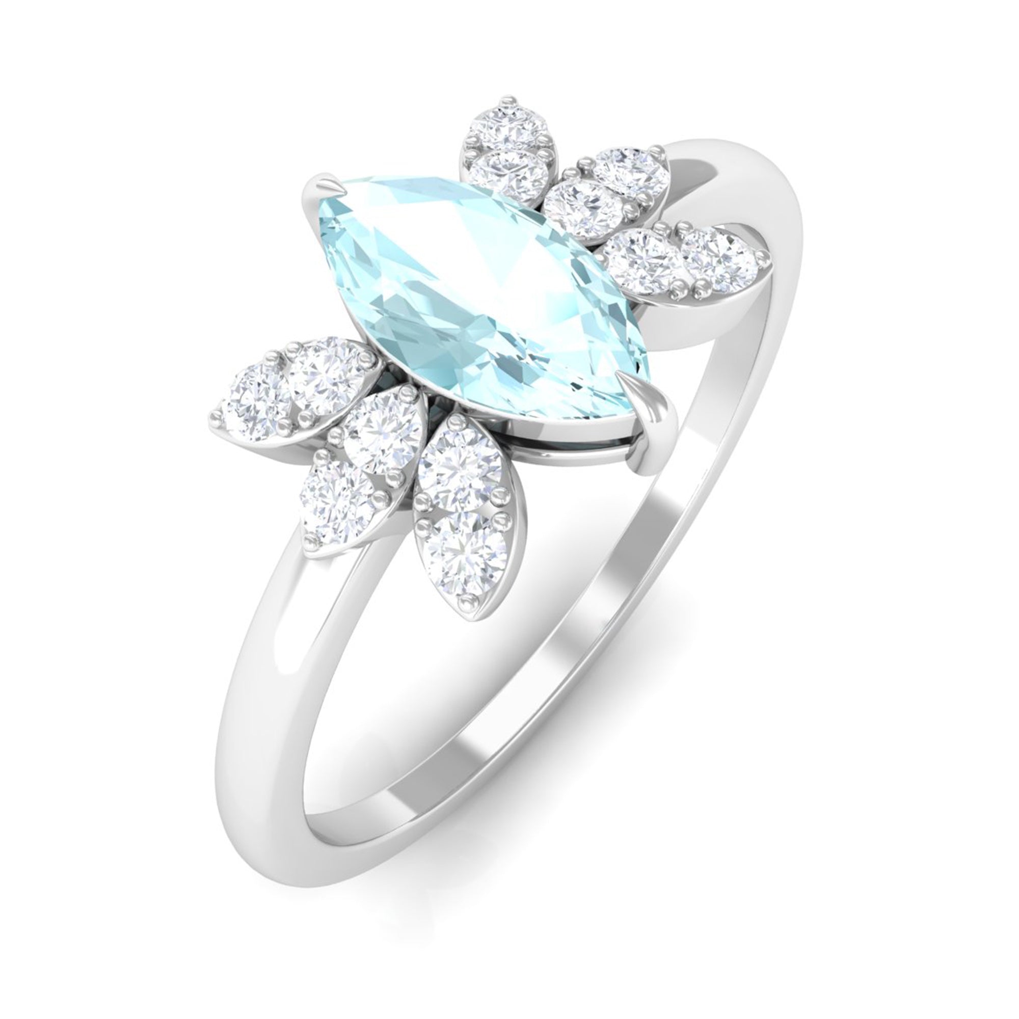 Claw Set Marquise Sky Blue Topaz and Diamond Promise Ring