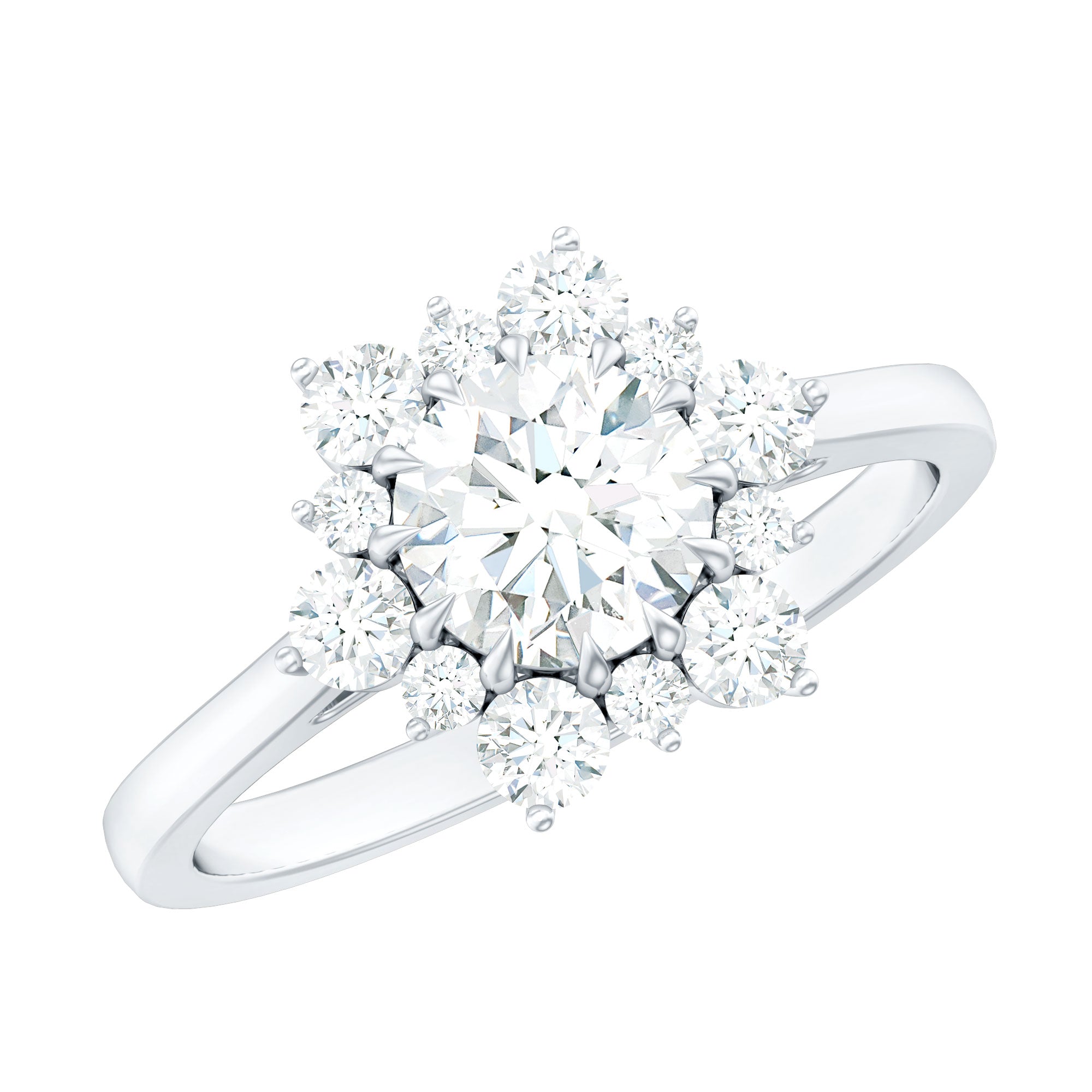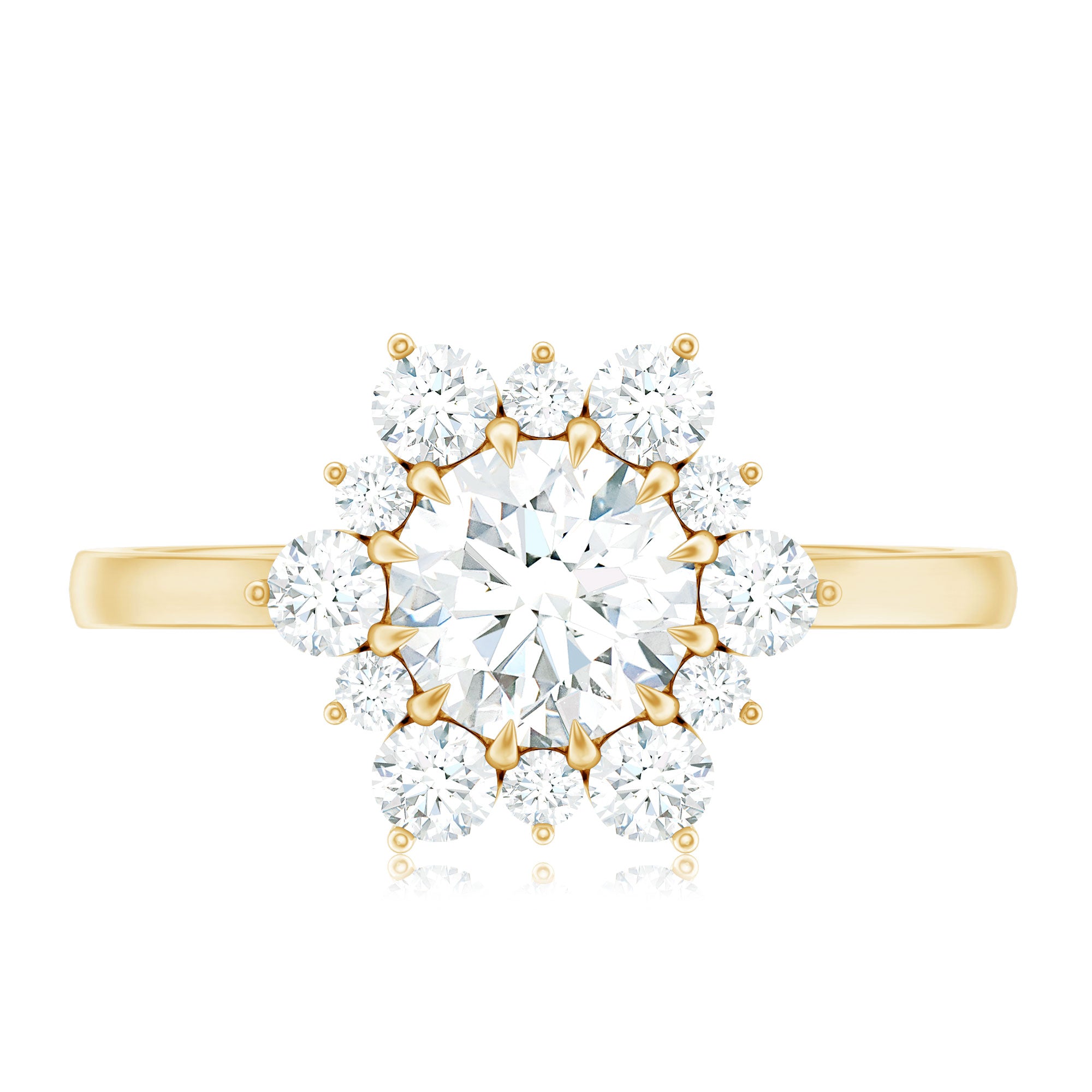Claw Set Moissanite Halo Engagement Ring with Certificate