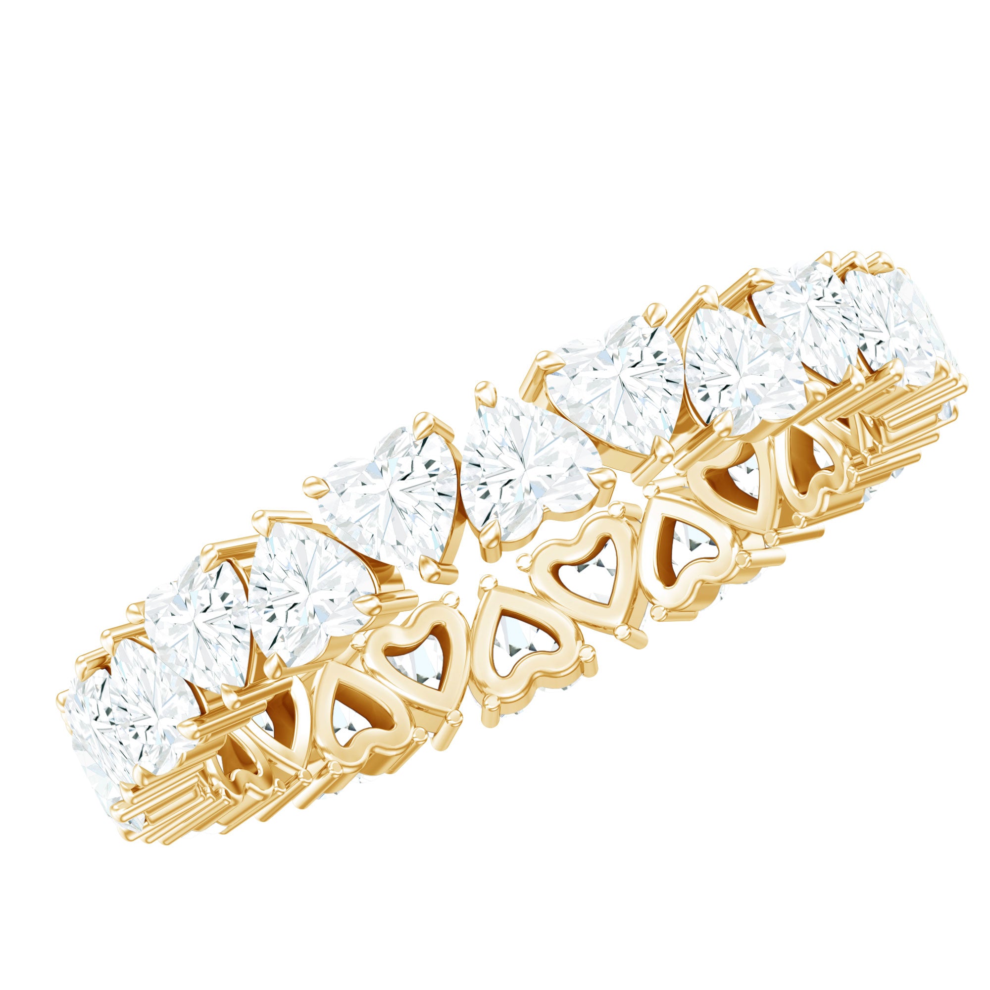 Moissanite is valued for its bright appearance and noticeable sparkle. It offers a lively surface reflection that enhances the heart shape of each stone. As with all fine jewelry, mindful wear and regular cleaning help maintain the band’s appearance and overall structure over time.