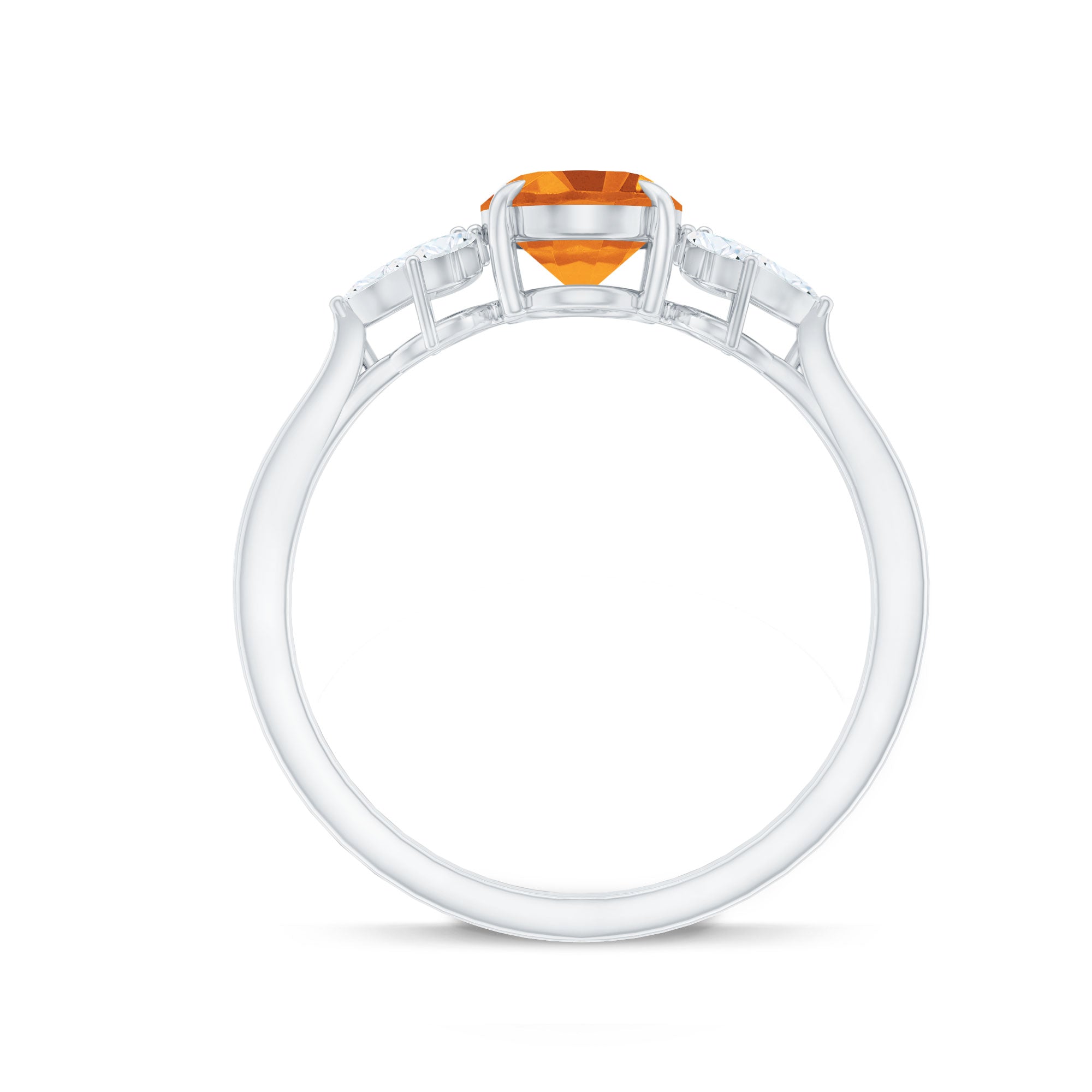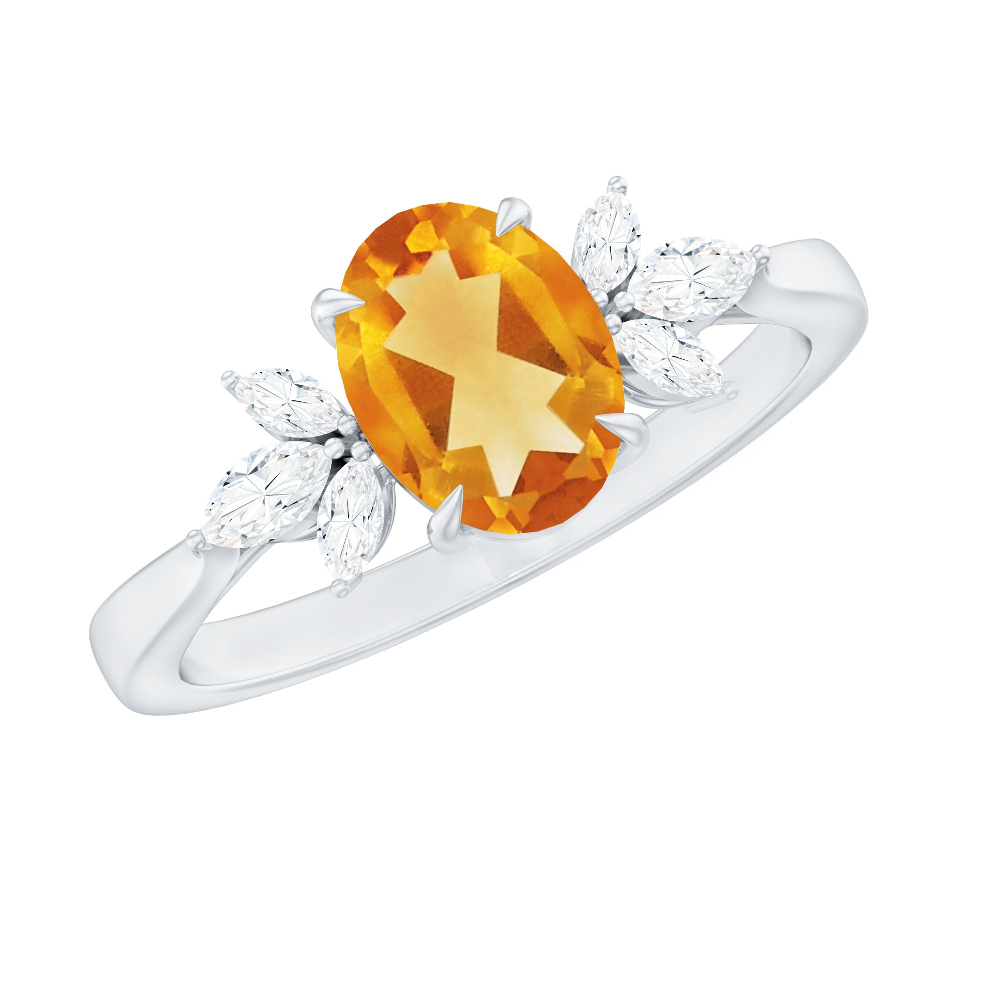 Claw Set Oval Citrine Solitaire Ring with Marquise Diamond Trio
