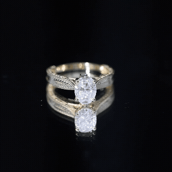 Radiate with grace and elegance on your special day with this stunning Oval Engagement Ring. This Solitaire Engagement Ring features a dazzling Oval Shape Lab Grown Diamond in a secure Claw Setting. Its adorned with Hidden Lab Grown Diamond Stones and intricate Braided Engraved Detailing along the captivating shank. This Ring exudes sophistication and timeless beauty, making it the perfect symbol of your love.