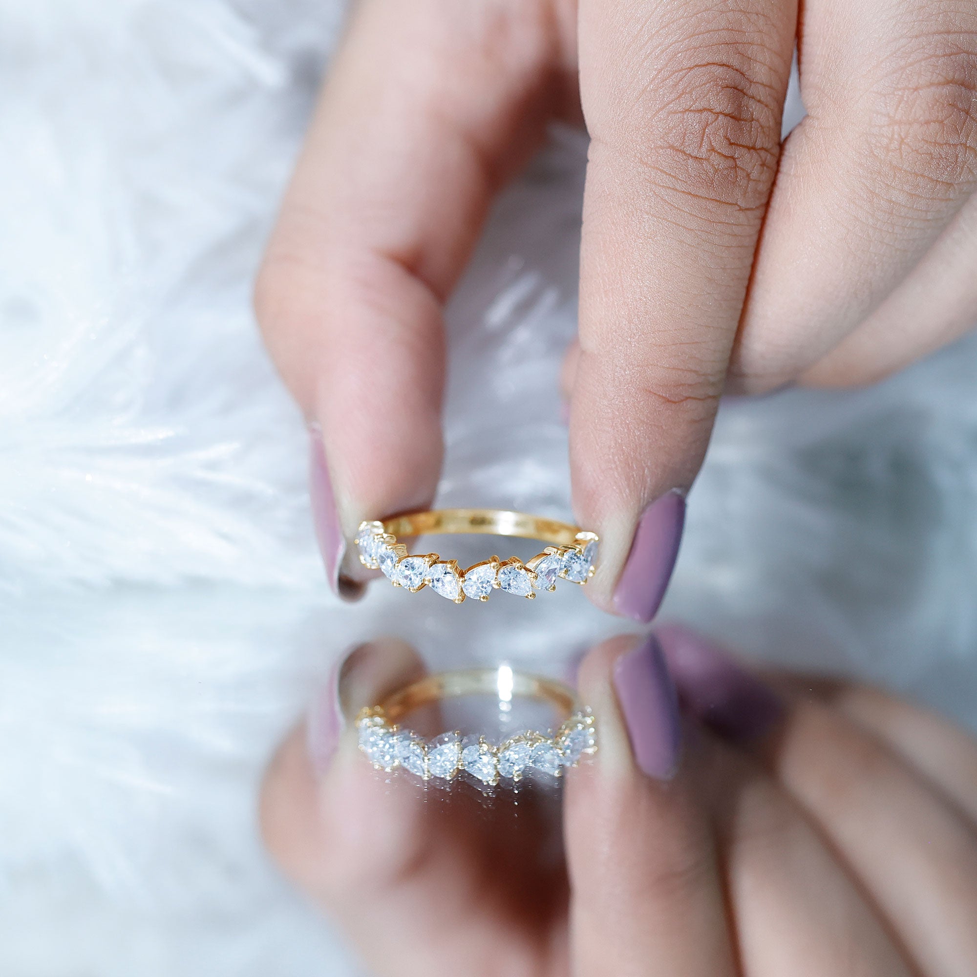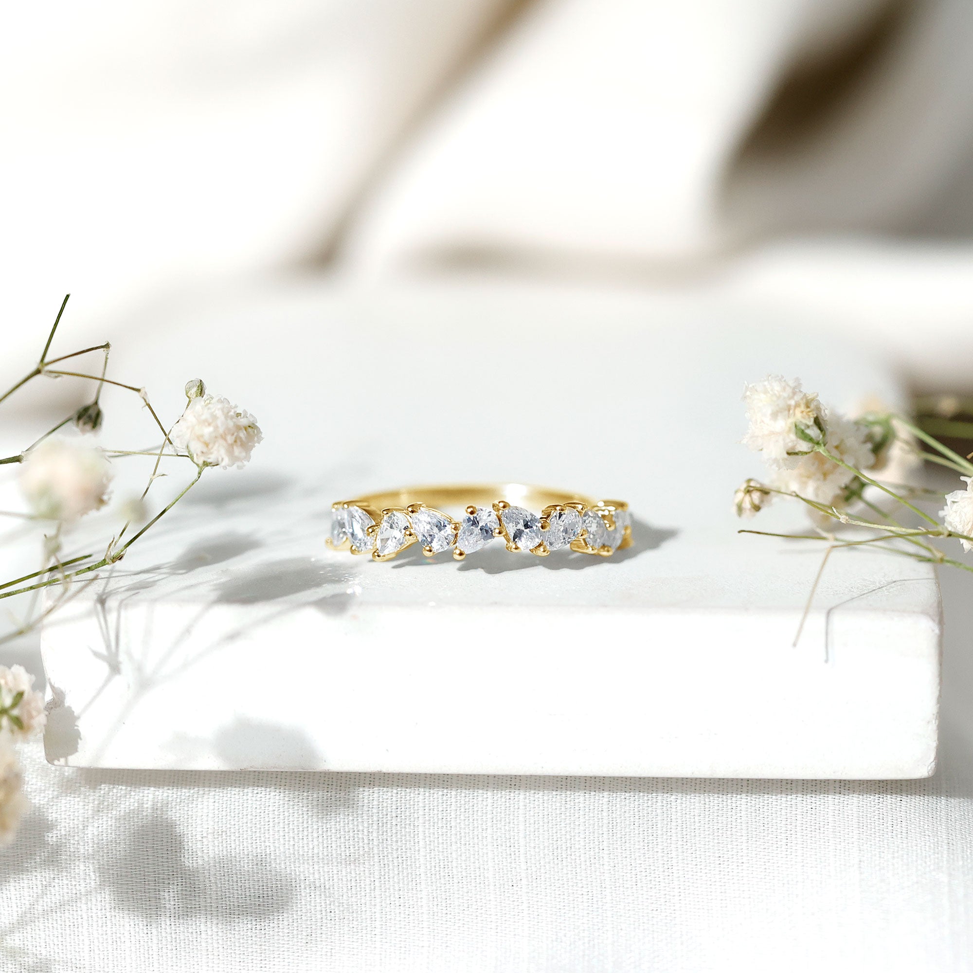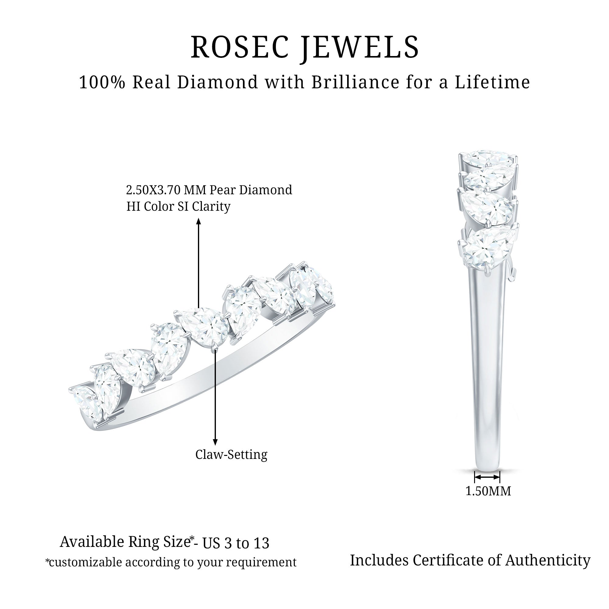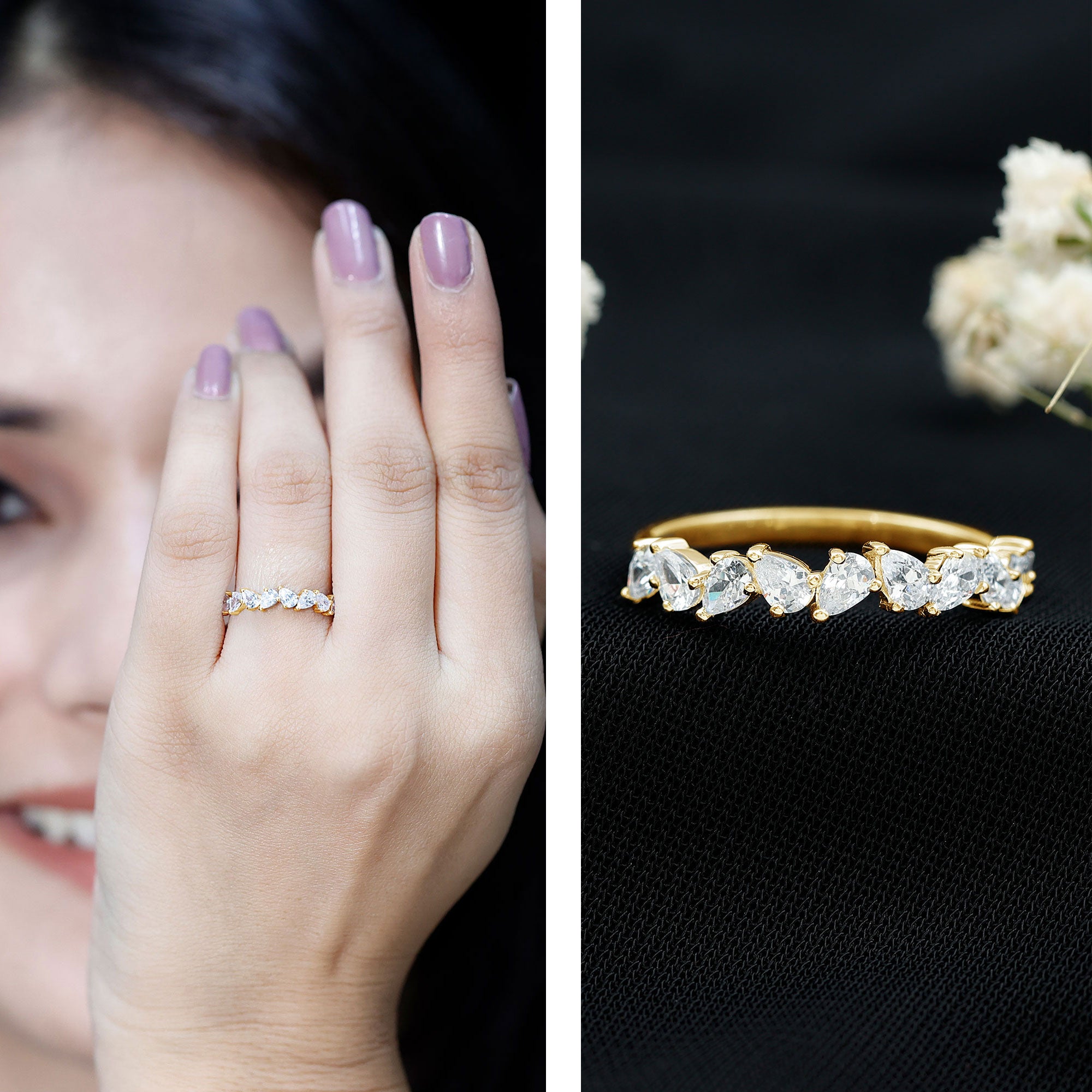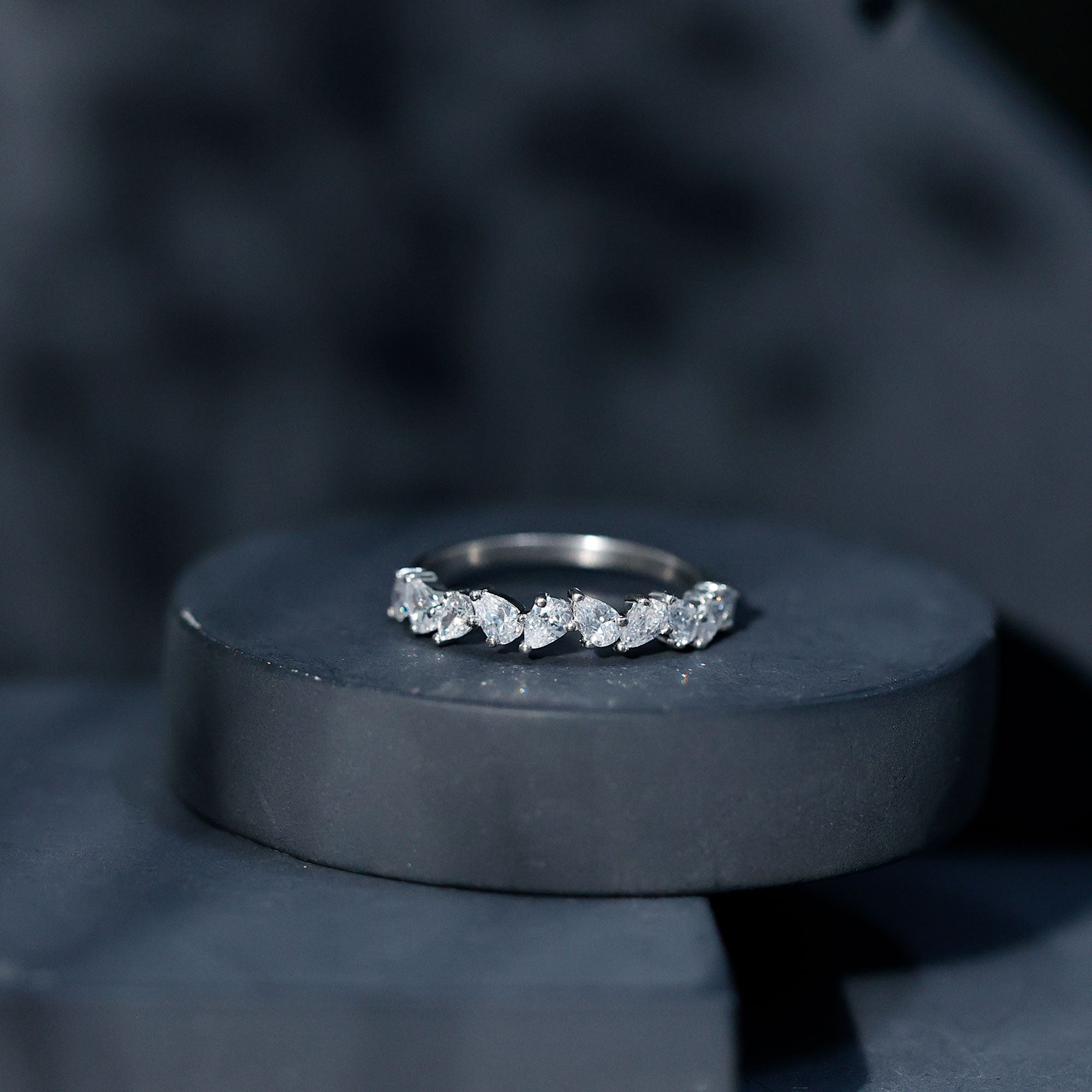 Elegantly set the Pear Cut Diamond in Prong Setting on Half Eternity Band Ring is effortlessly a perfect piece to don on any occasion.