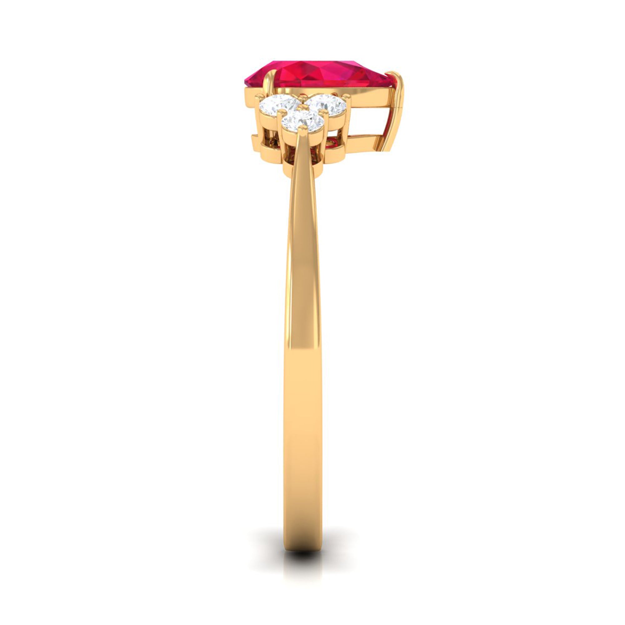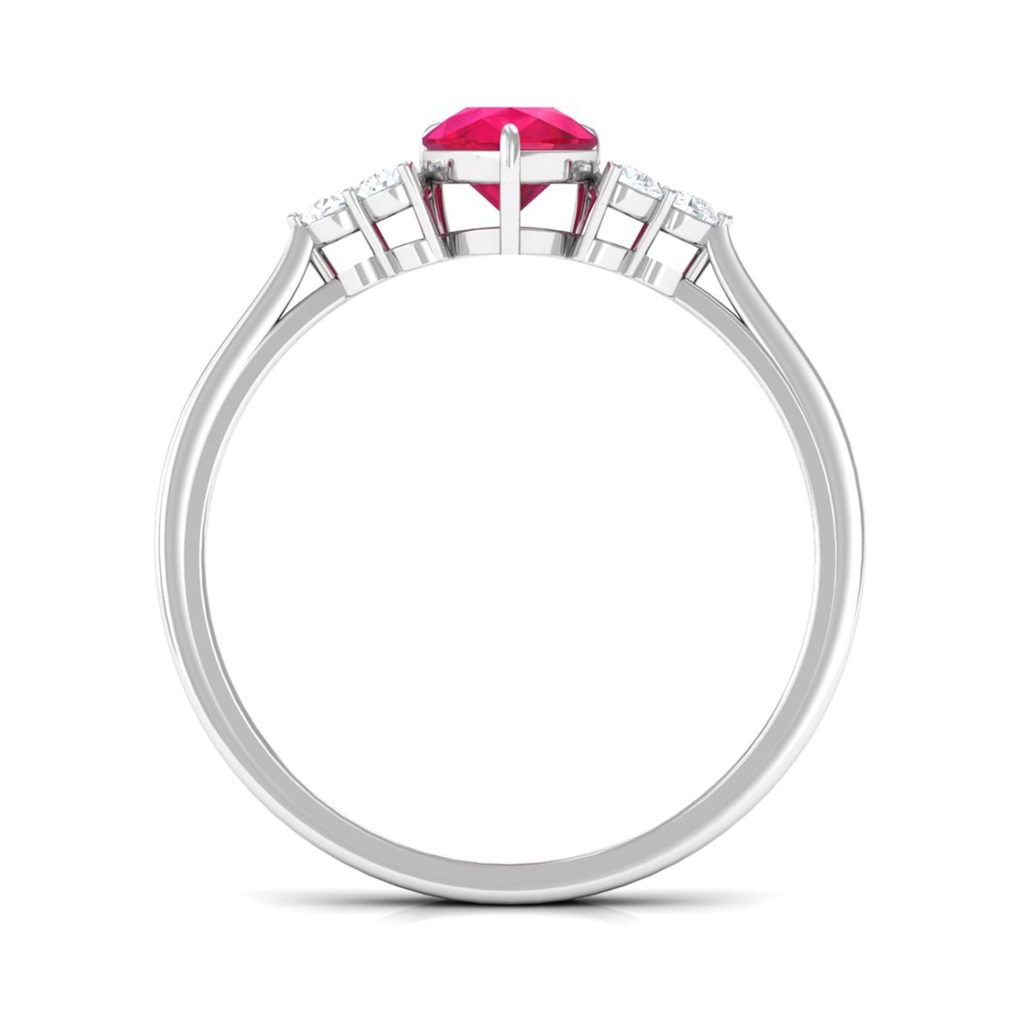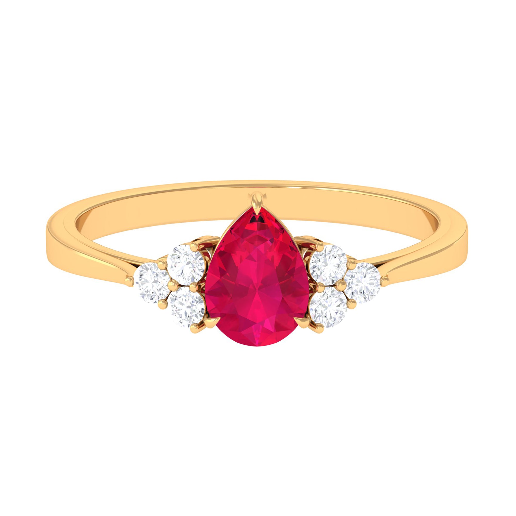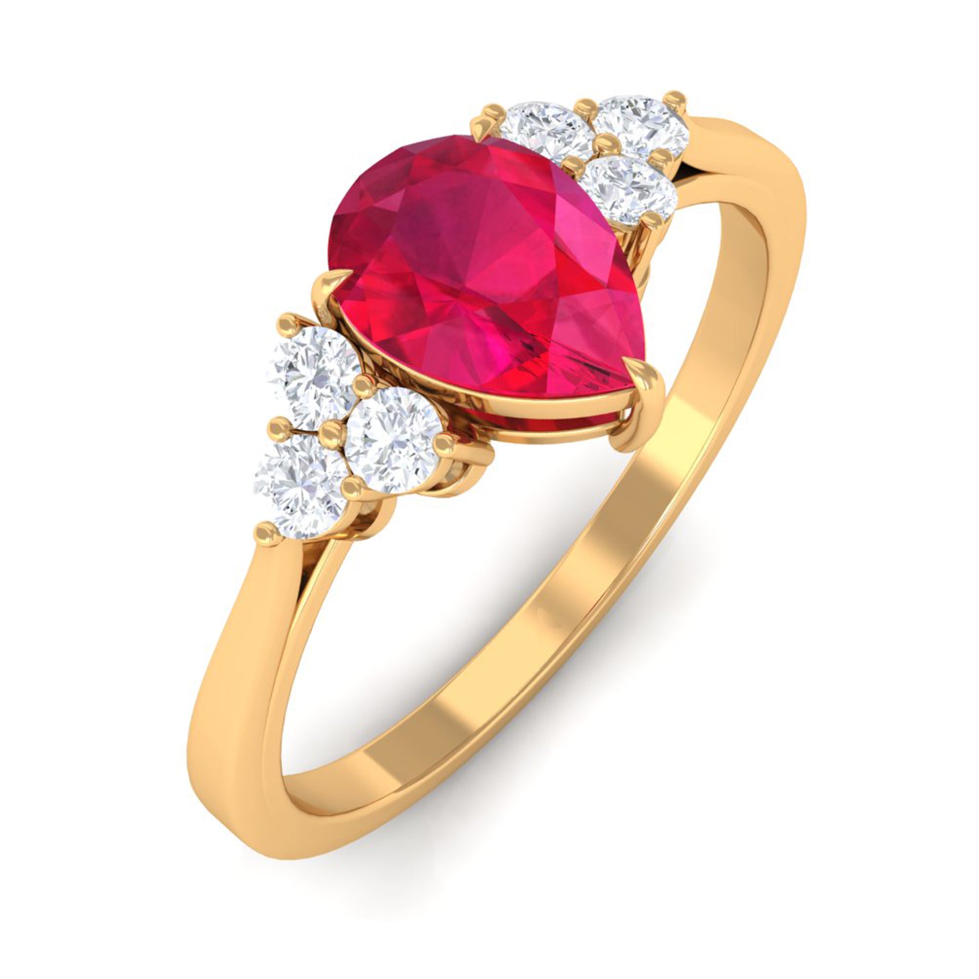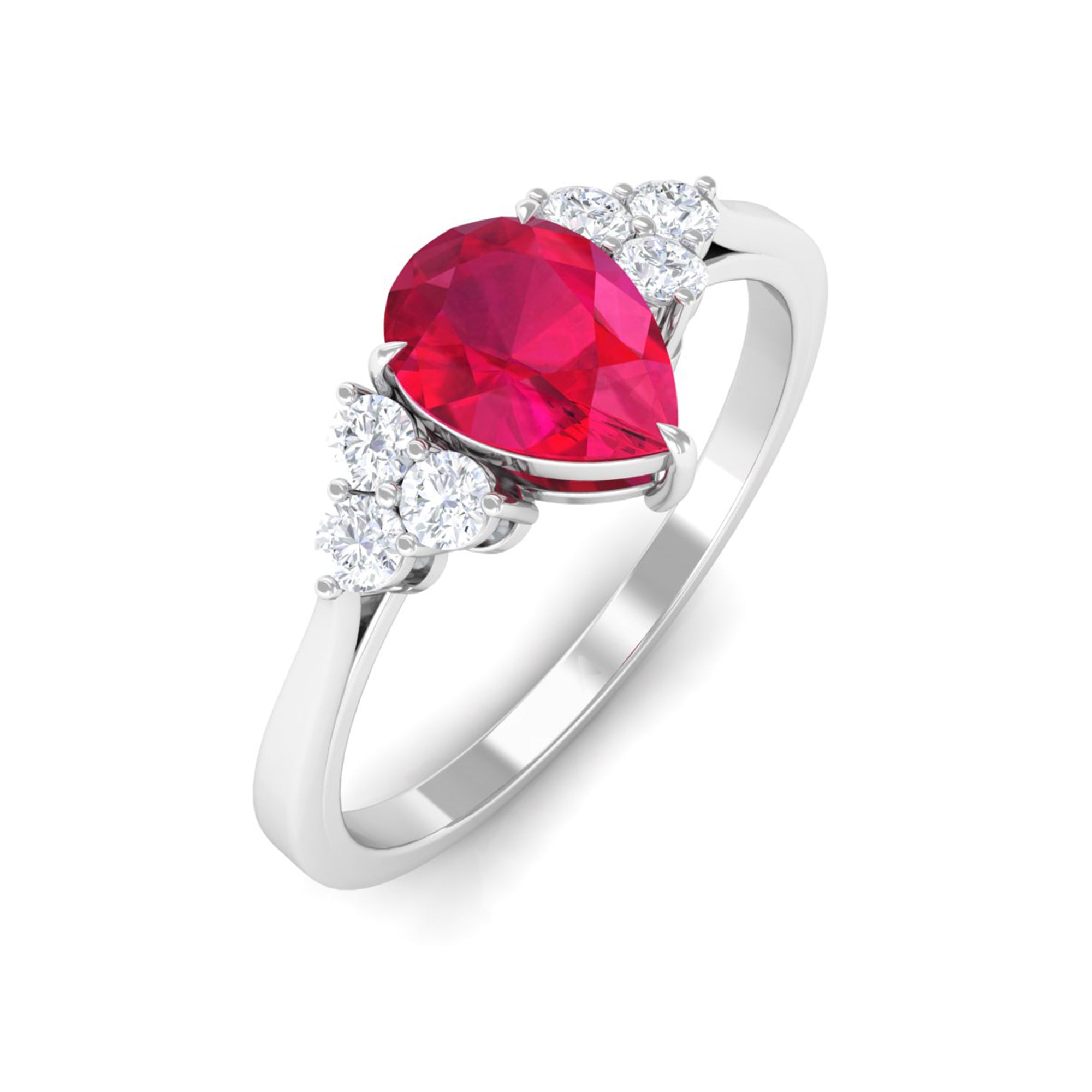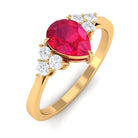 With this adorable Pear Solitaire Ring, you can bring elegance to your appearance with Pear Cut Ruby set as a Solitaire with Round Diamond stones prong set in a trio.