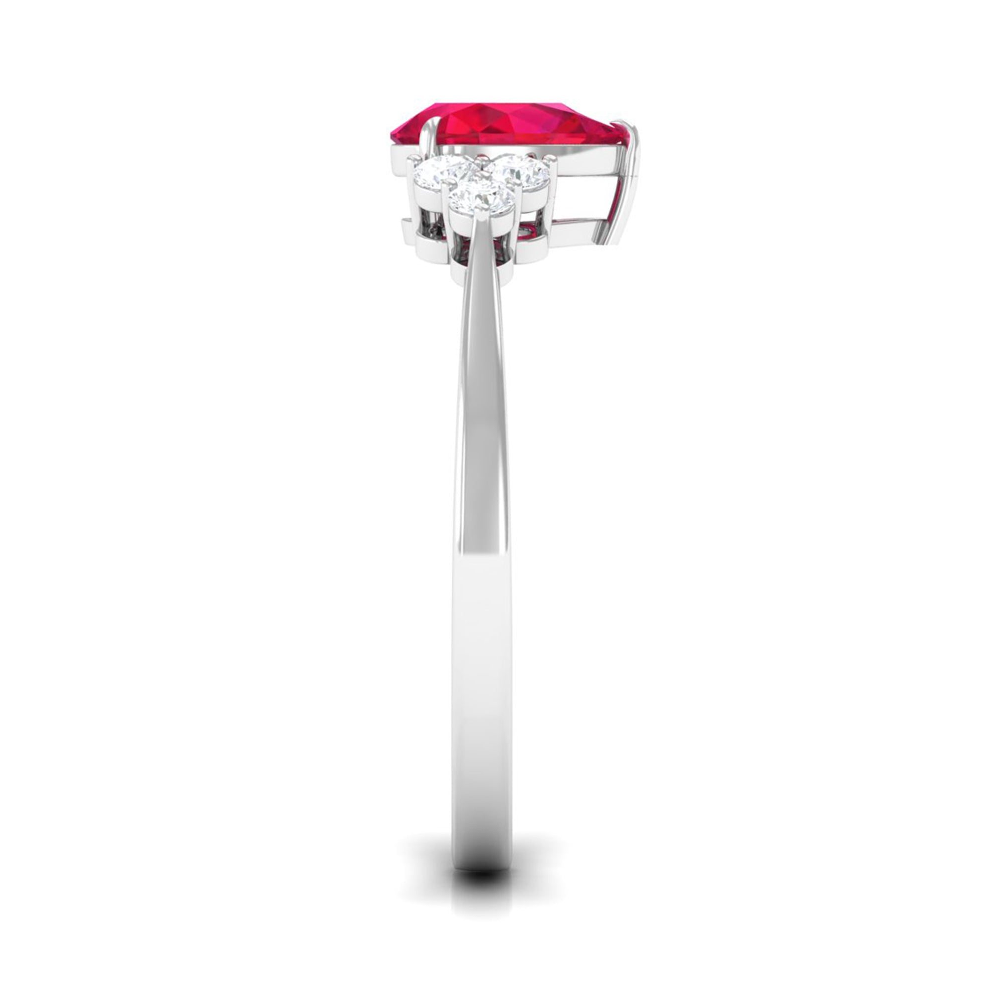 Claw Set Ruby Pear Solitaire Ring with Diamond Trio