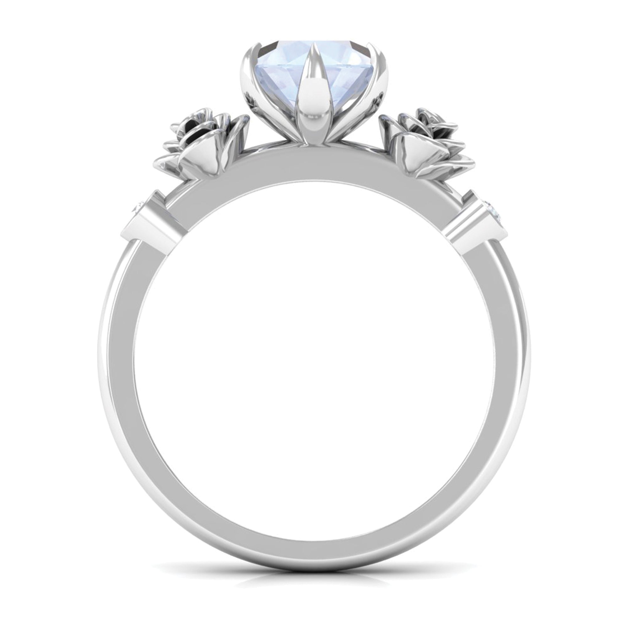 Claw Set Solitaire Moonstone Flower Ring with Diamond