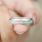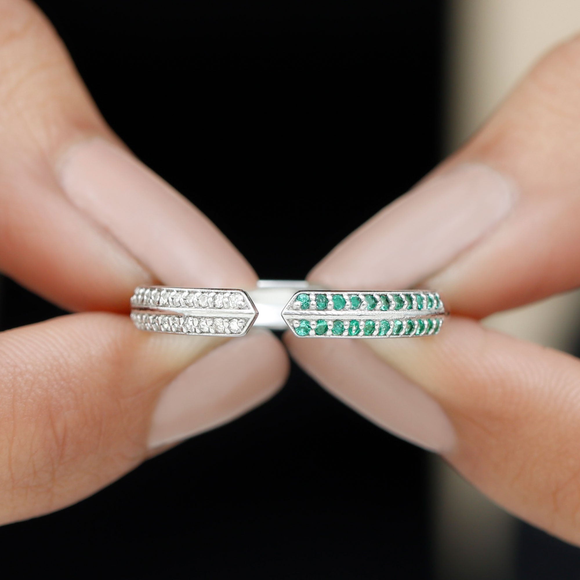 Contemporary Emerald and Moissanite Open Wedding Band Ring