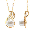 Look magnificent while flaunting this mesmerizing Pearl Pendant crafted in Solid Metal and embellished with Round Shape Freshwater Pearl while Round Shape Diamonds secured in Pave Setting on a unique design. The Freshwater Pearl Pendant makes a charming piece for you to wear with your favorite attires solo and also when stacked with other pieces.