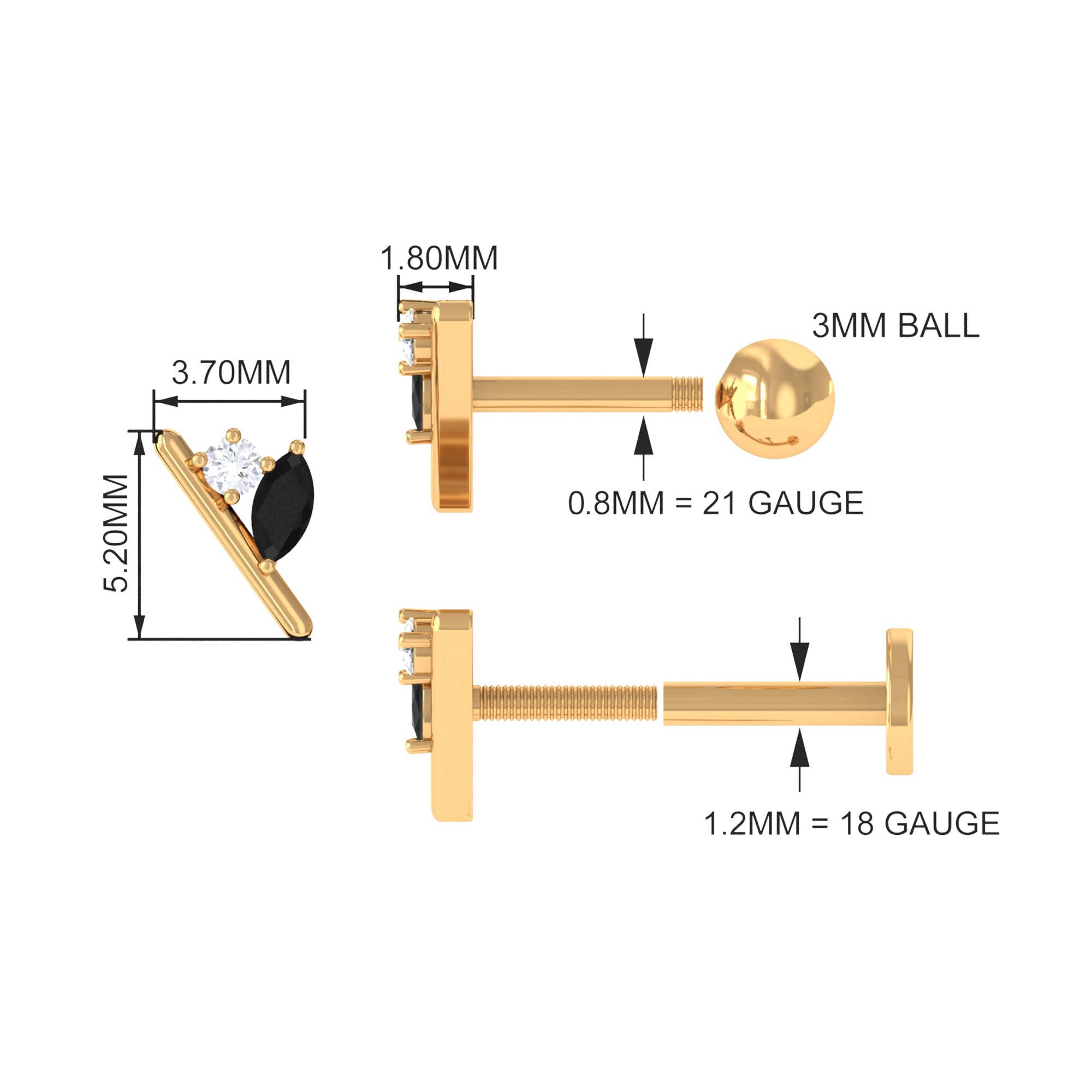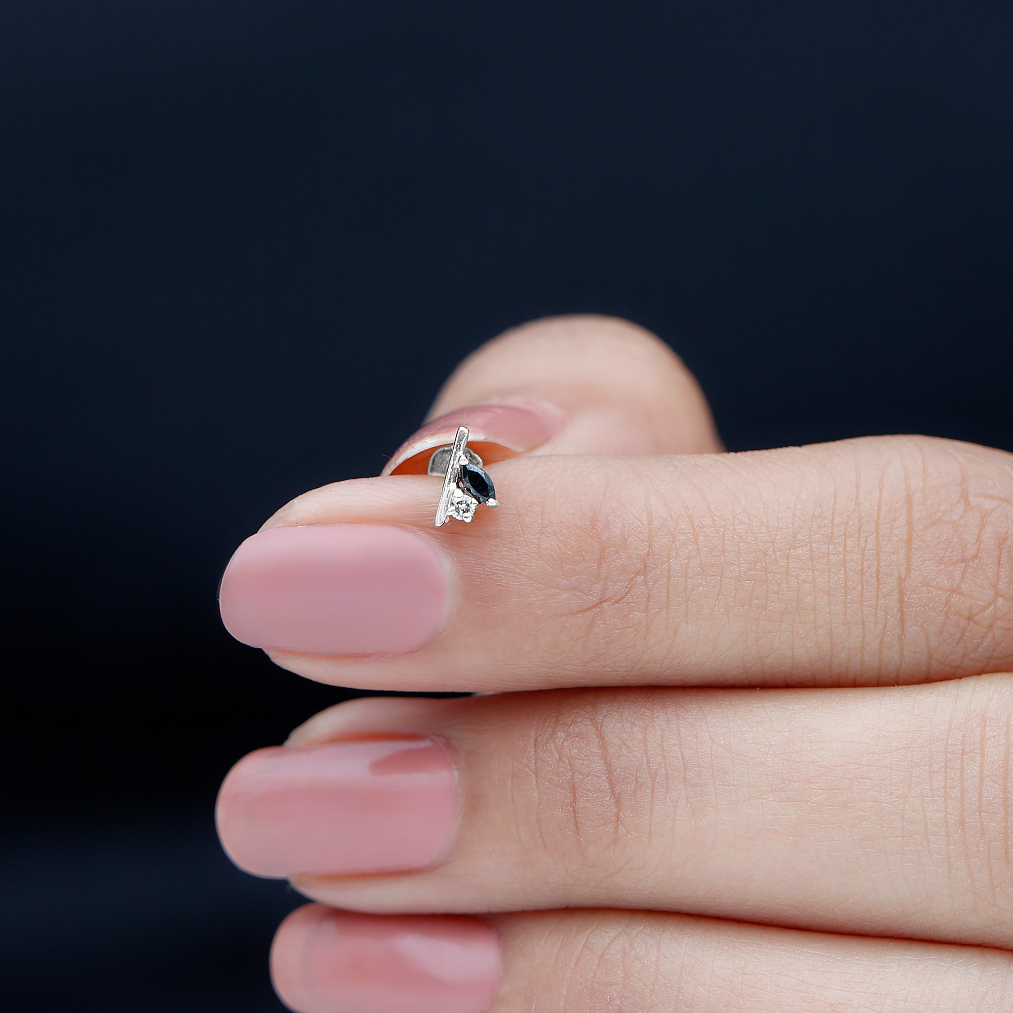 The Helix Earring is just the one for you, adorned with a Marquise Black Diamond (Lab Grown) in Prong Setting and a Round White Diamond on a unique design. The Flat Back closure will help to secure your earring in place as you can wear it on your Helix, Upper Lobe, or Cartilage Piercing. This Piercing Earring will put you in the limelight and makes an ideal birthday gift for your beloved one.