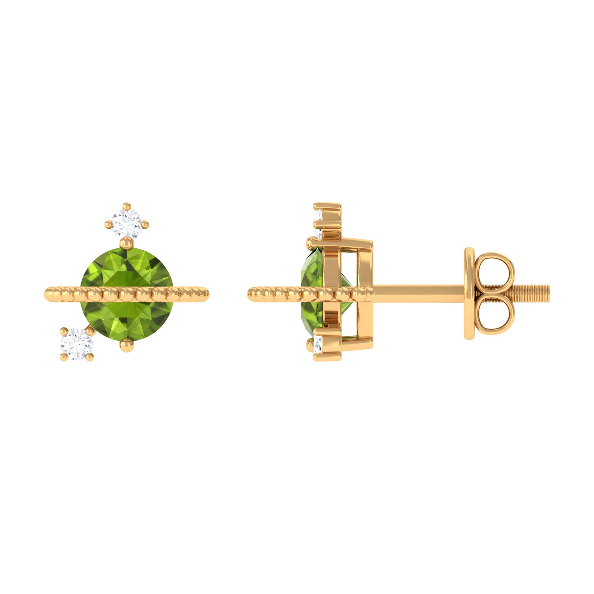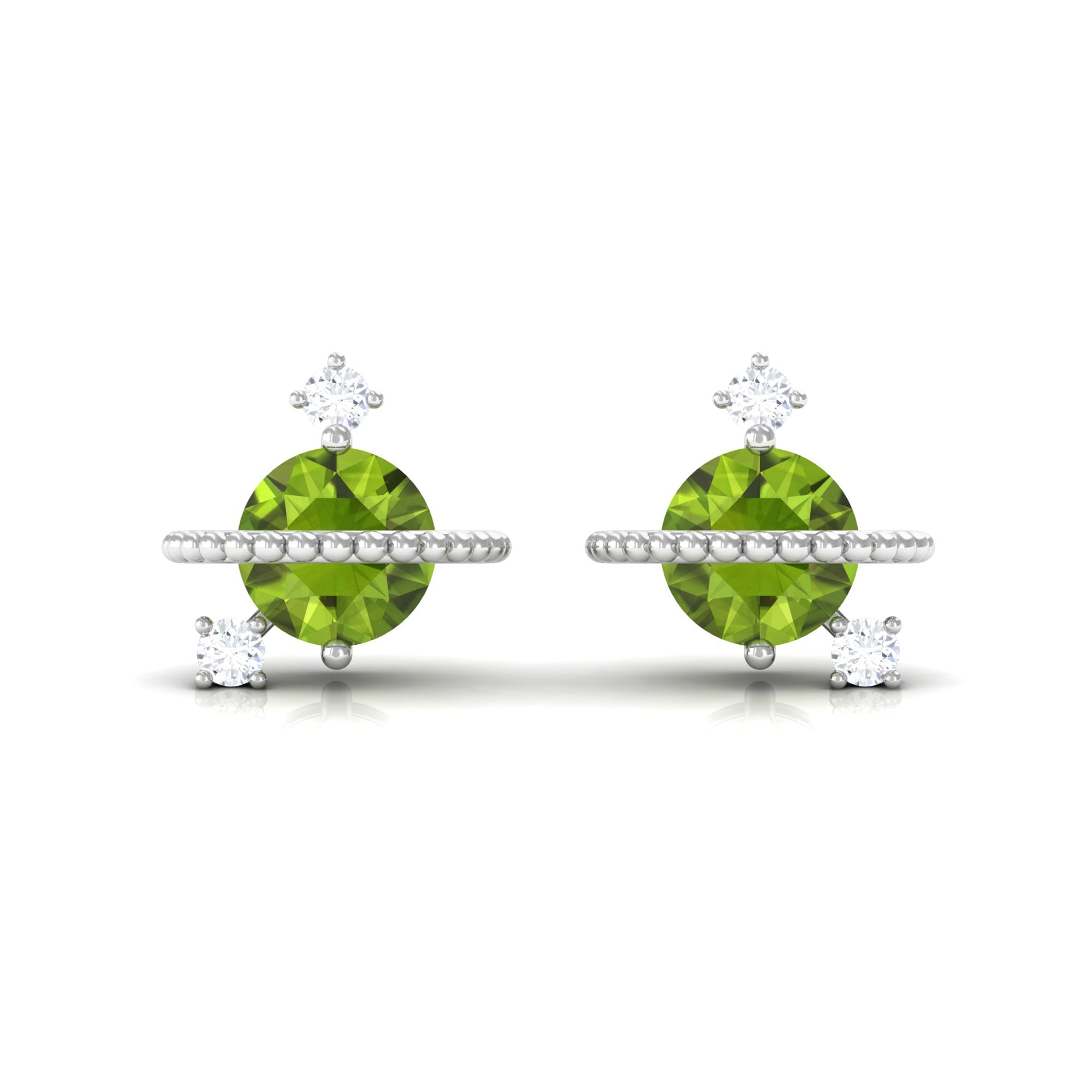 Embrace celestial charm with these Contemporary Peridot Stud Earrings, adorned with shimmering Diamond, a stylish fusion of modernity and natural beauty.