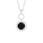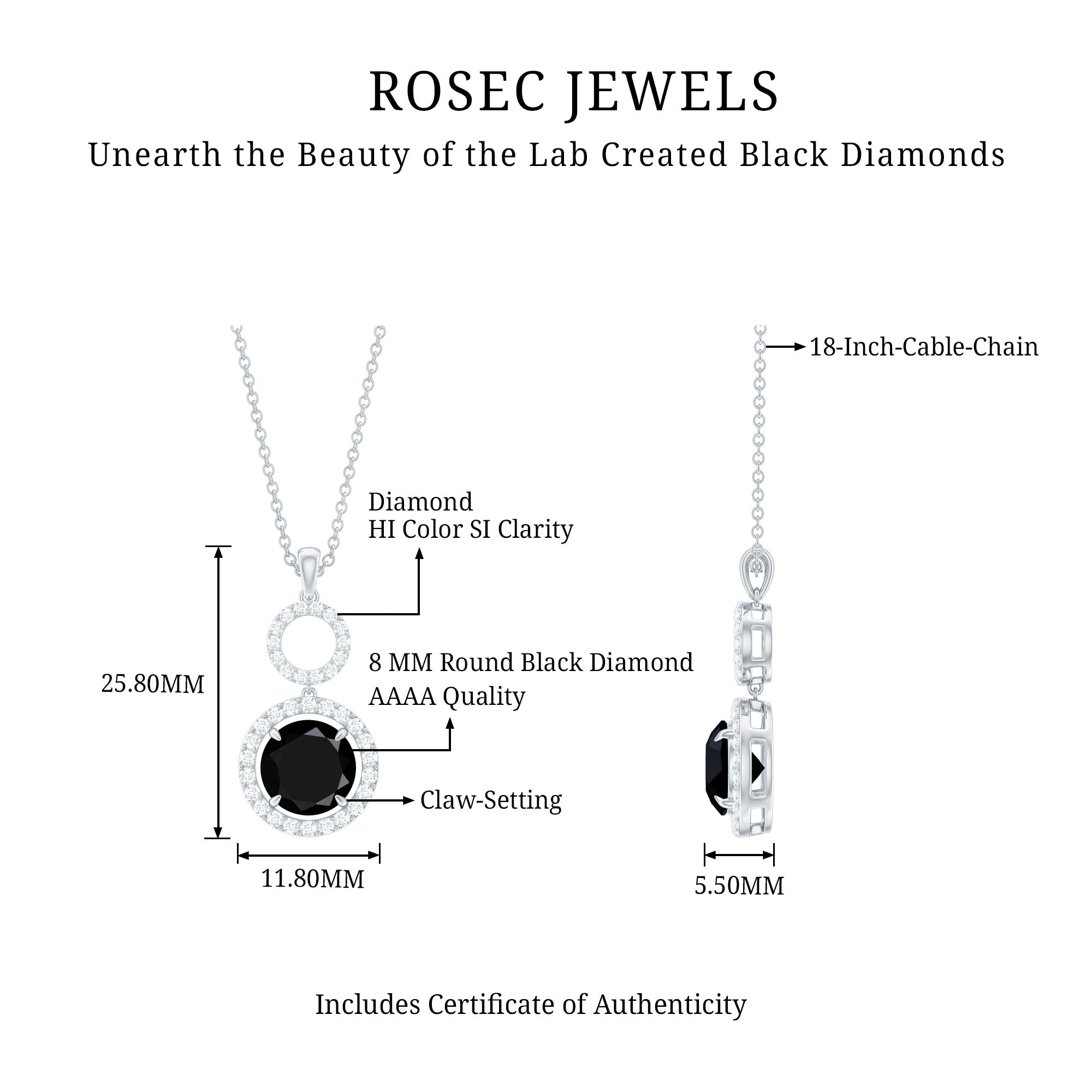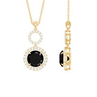 Elevate your style with this exquisite Created Black Diamond Pendant. Featuring a Brilliant Round Shape Created Black Diamond in a Claw Setting with white diamond Halo and Open Circle, this pendant necklace is a stunning addition to your jewelry collection. Crafted in Gold, this dangle pendant makes for a lovely surprise for your beloved.