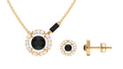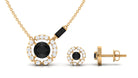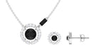Created Black Diamond and Diamond Halo Necklace Earrings Set