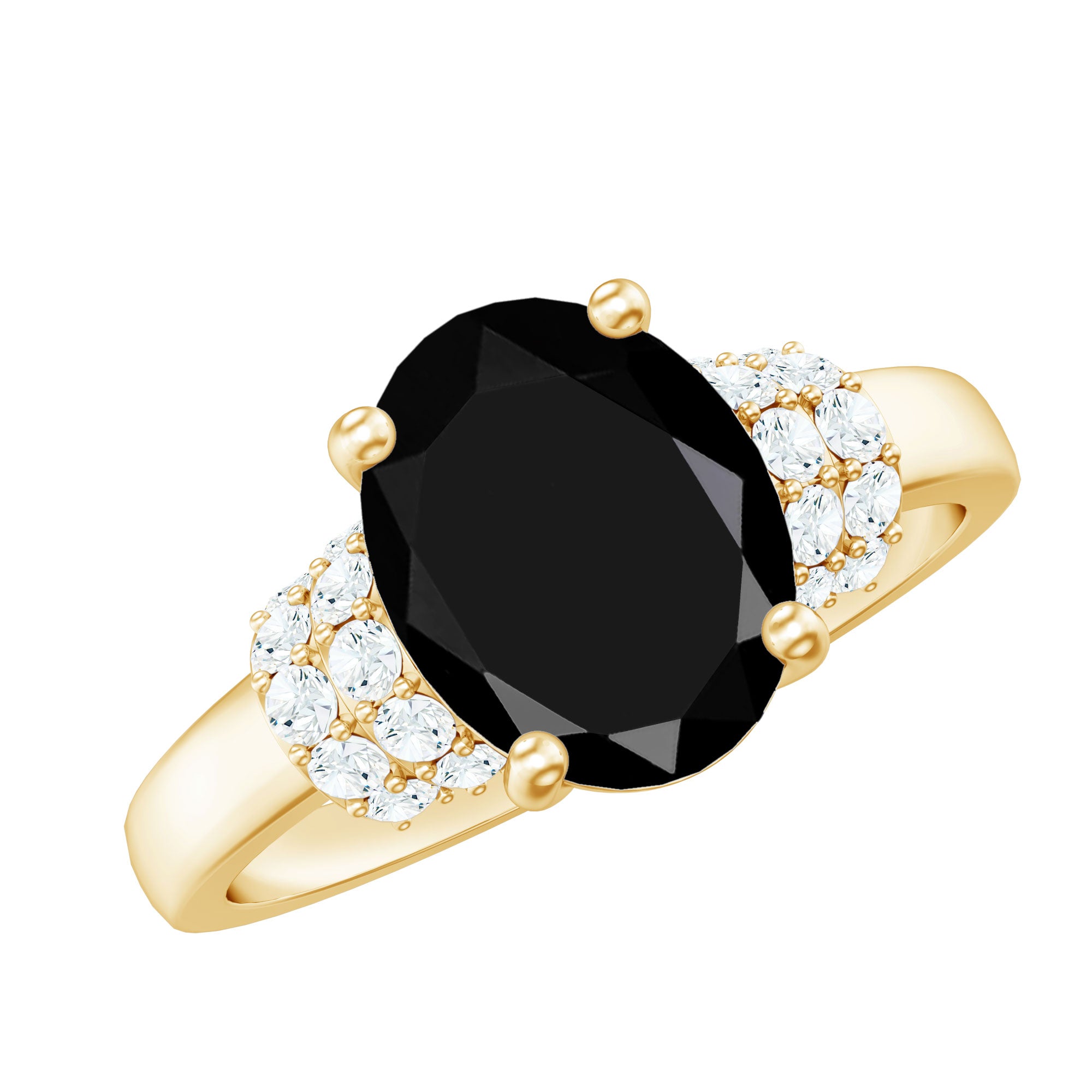 Enhance your elegance with the captivating Engagement Ring embellished with an Oval Cut Created Black Diamond and Round Shape Diamond Collar. This exquisite Solitaire Ring is a perfect adornment for any occasion, adding a touch of sophistication to any ensemble. Let this stunning piece accentuate your style and grace, making a statement that is sure to turn heads and leave a lasting impression.