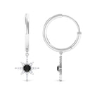 Created Black Diamond and Diamond Sunburst Hoop Earrings