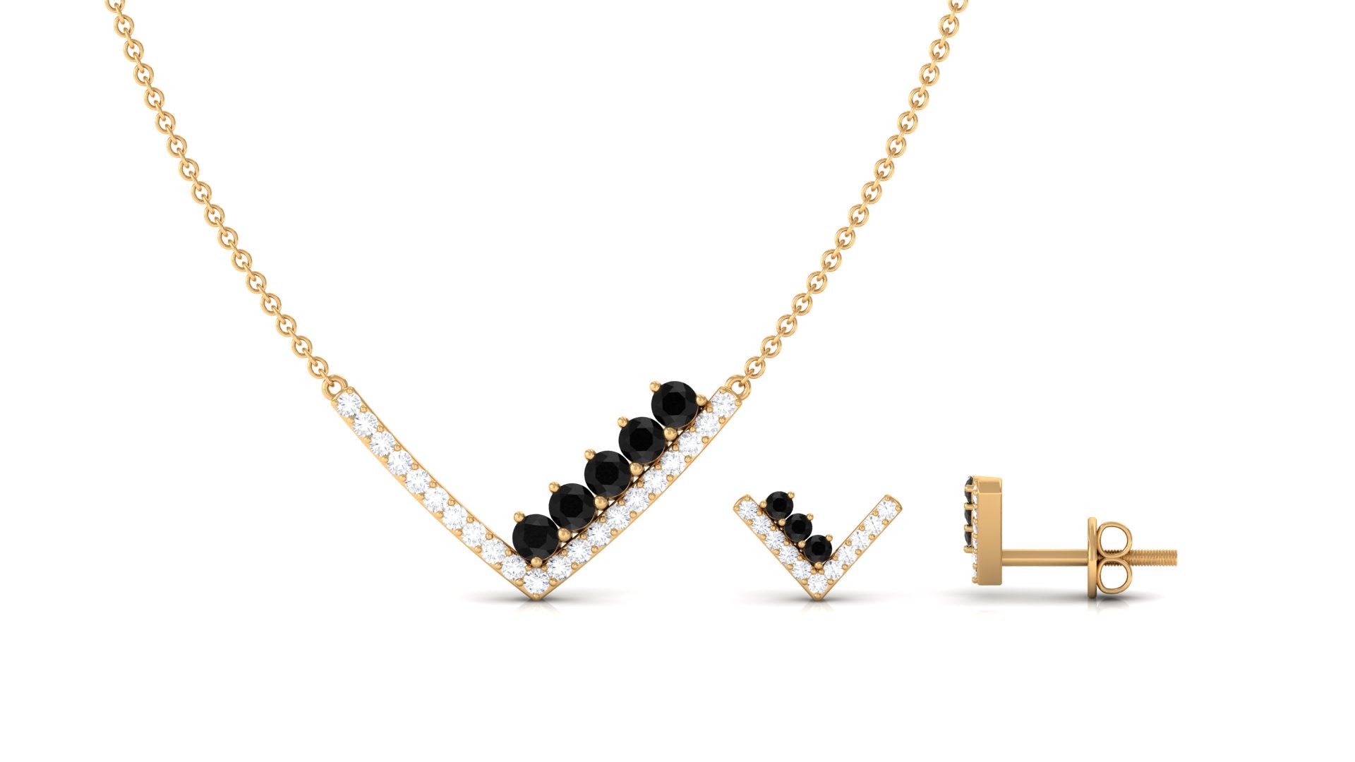 Created Black Diamond and Diamond V-Style Jewelry Set