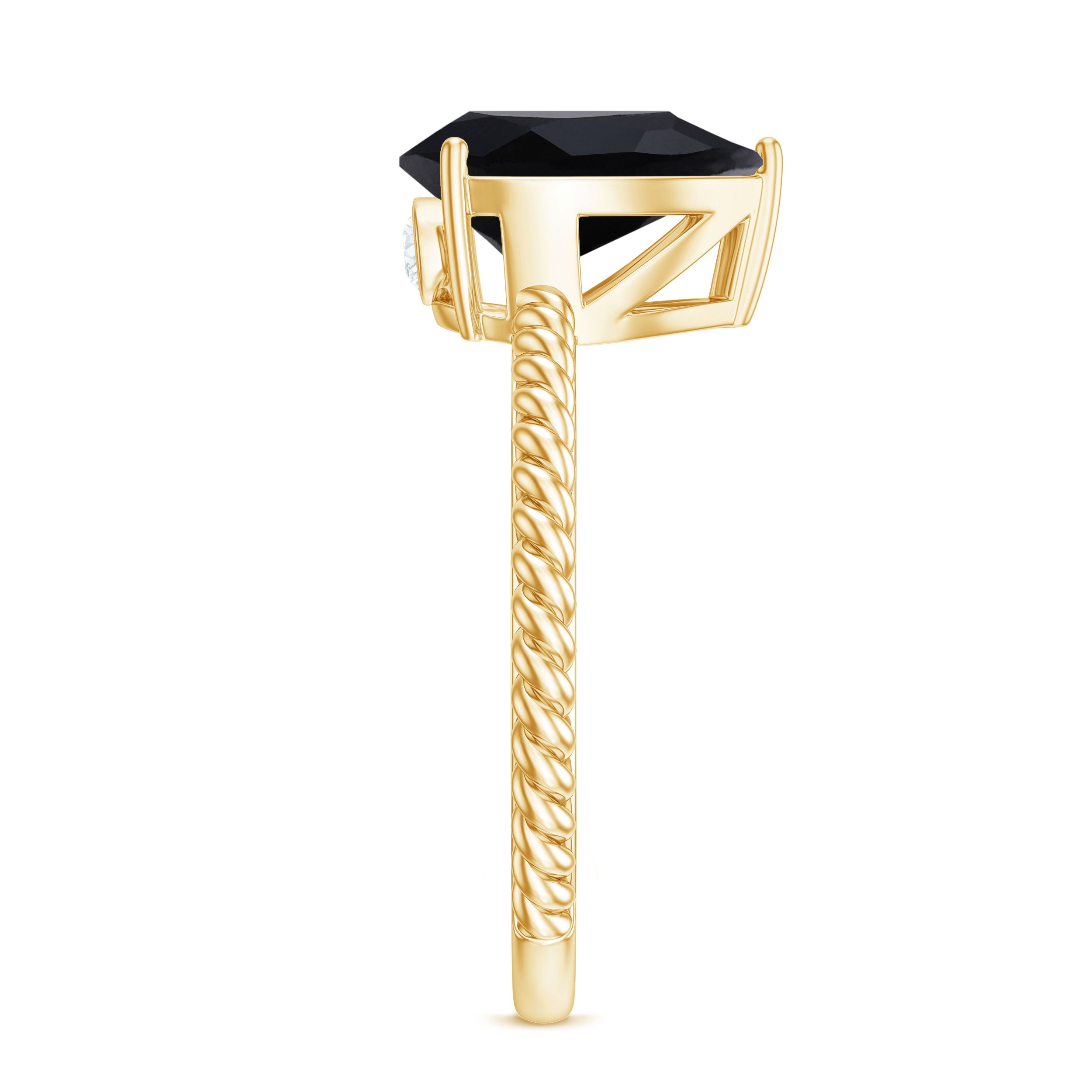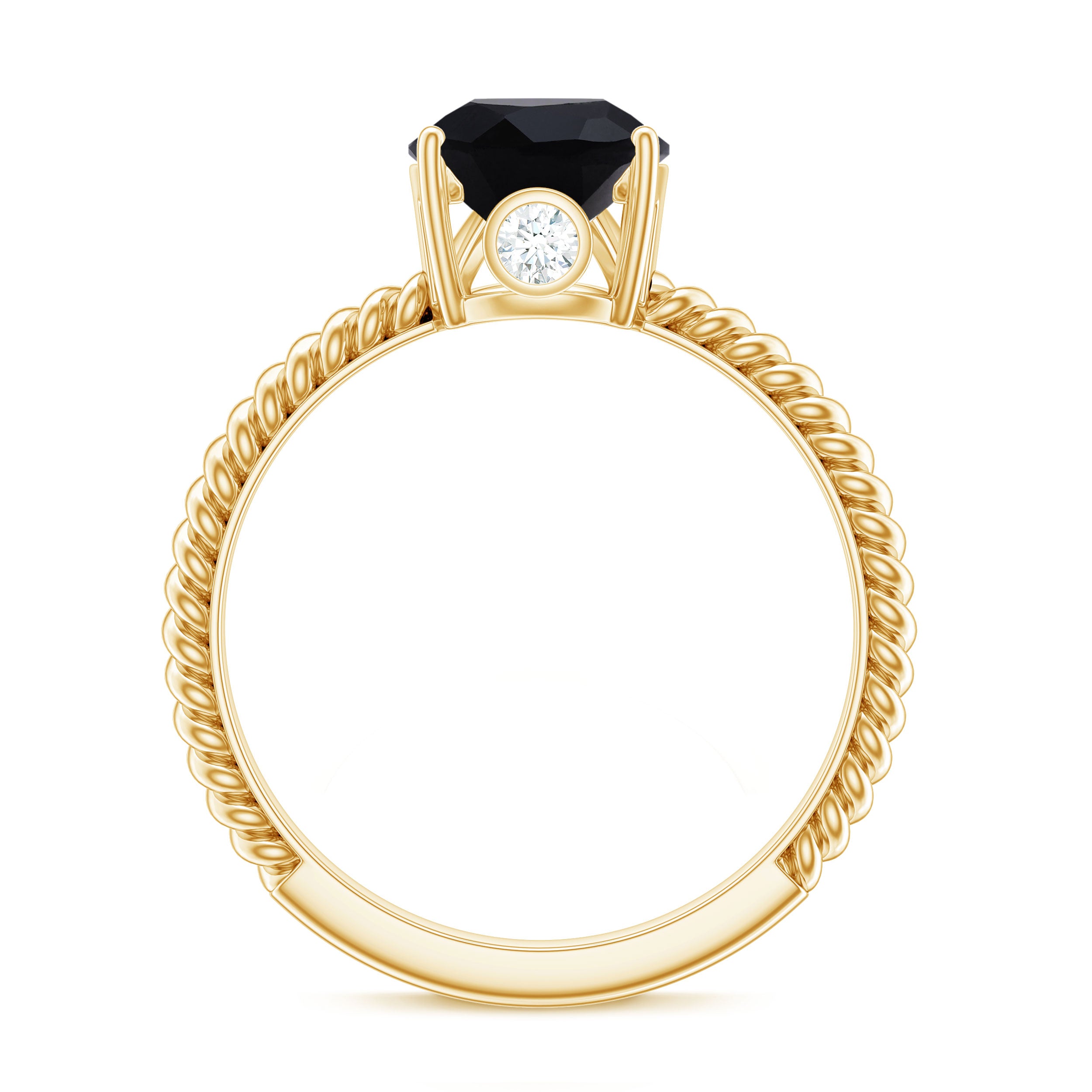 Elevate your everyday style with this timeless Created Black Diamond Ring, destined to become your go-to staple jewelry. Effortlessly complement all your outfits with the stunning Pear Cut Created Black Diamond, elegantly set in a prong setting, with shimmering Hidden Moissanite stones. The exquisite twisted rope details add a touch of sophistication, making this Solitaire Engagement Ring a truly perfect piece to cherish. Its timeless appeal ensures that it will be a cherished part of your collection for years to come.
