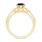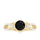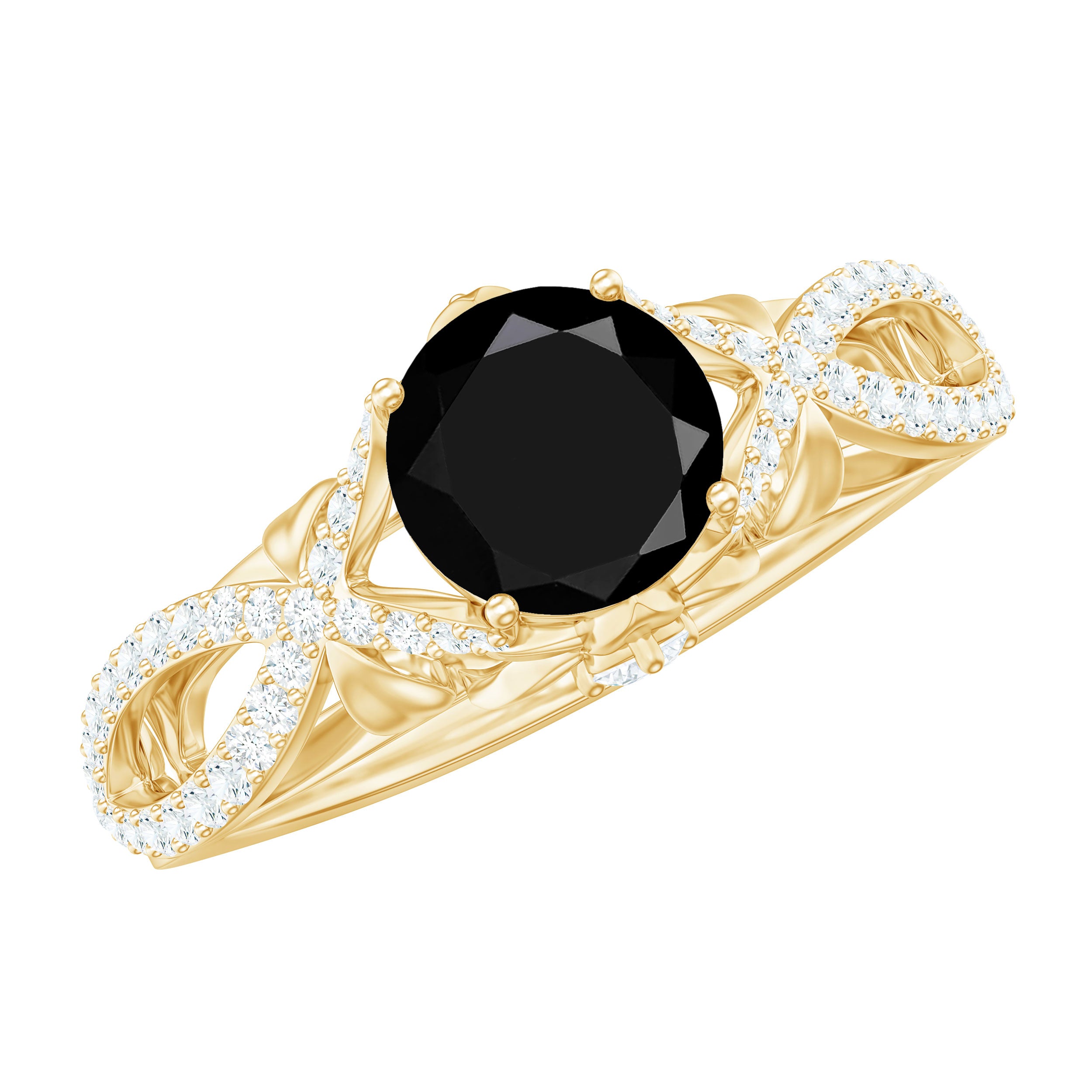 Adorn your finger with this glamorous Crossover Engagement Ring, featuring a round-cut created black diamond solitaire in a prong setting, with Diamond accents in a prong setting on a gold crossover shank. Crafted from solid gold, this ring is the perfect blend of modern and classic style for women.