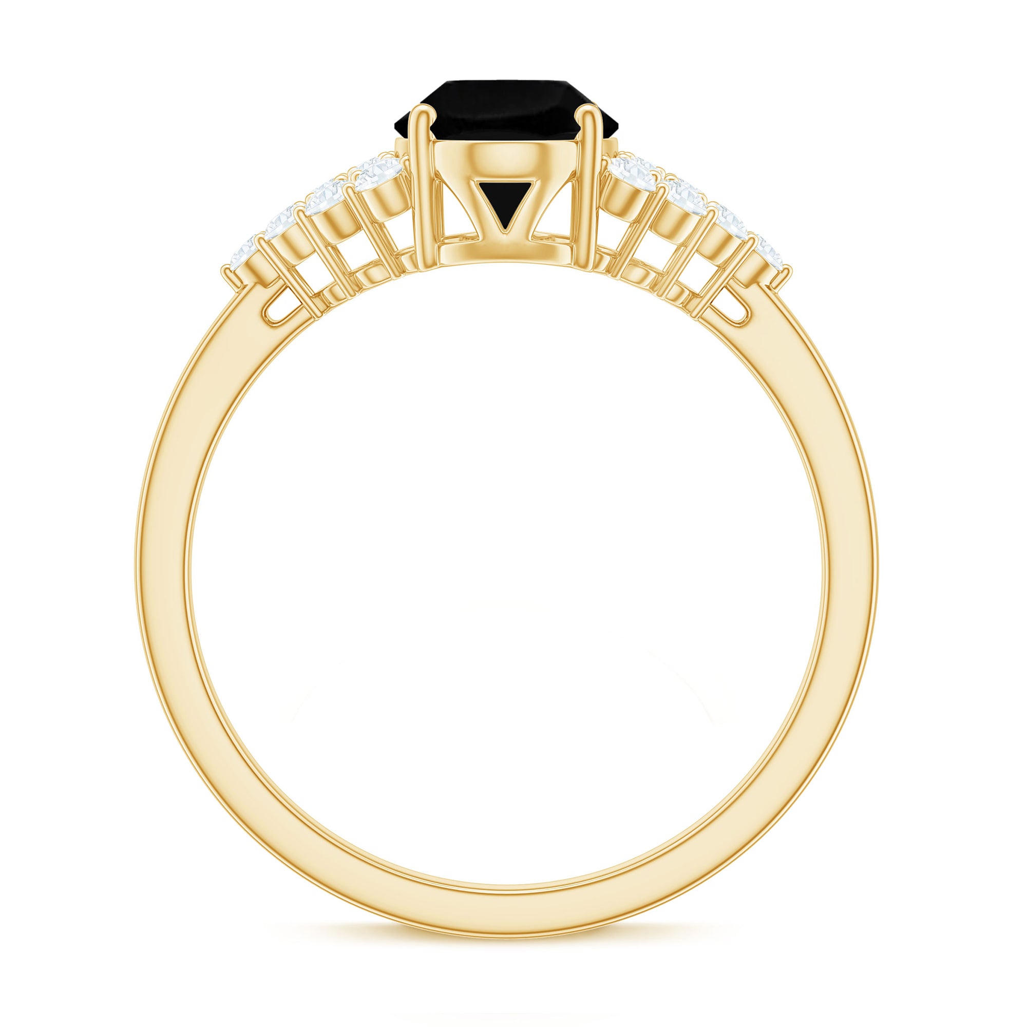 This simple yet exquisite Oval Engagement Ring features an Oval Shape Lab Created Black Diamond secured in 4 Prong Setting while Round Shape Diamond adds the right amount of sparkle. You can wear this Created Black Diamond Ring with your everyday or party attire, to create unique and stunning looks.