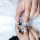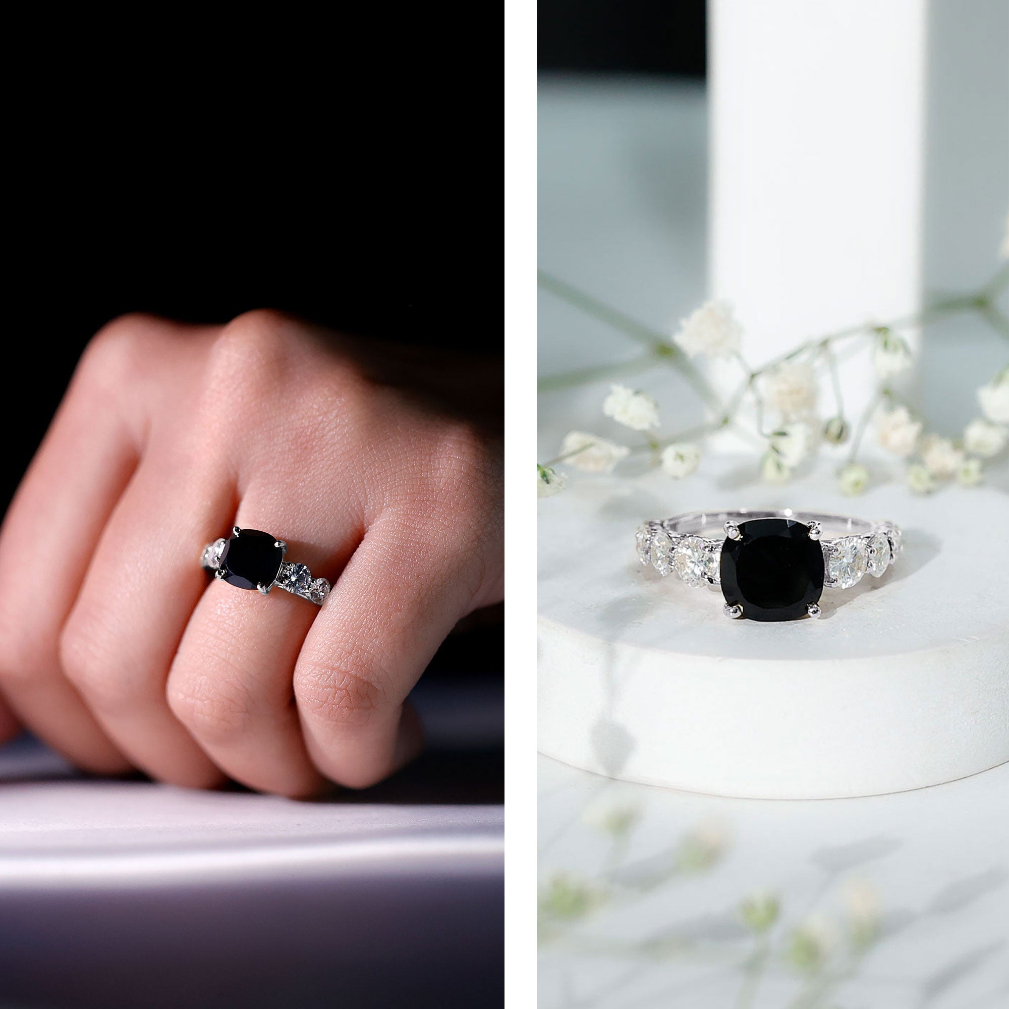 Created Black Diamond Solitaire Engagement Ring with Moissanite Side Stones
