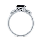 Created Black Diamond Solitaire Flower Engagement Ring with Accent