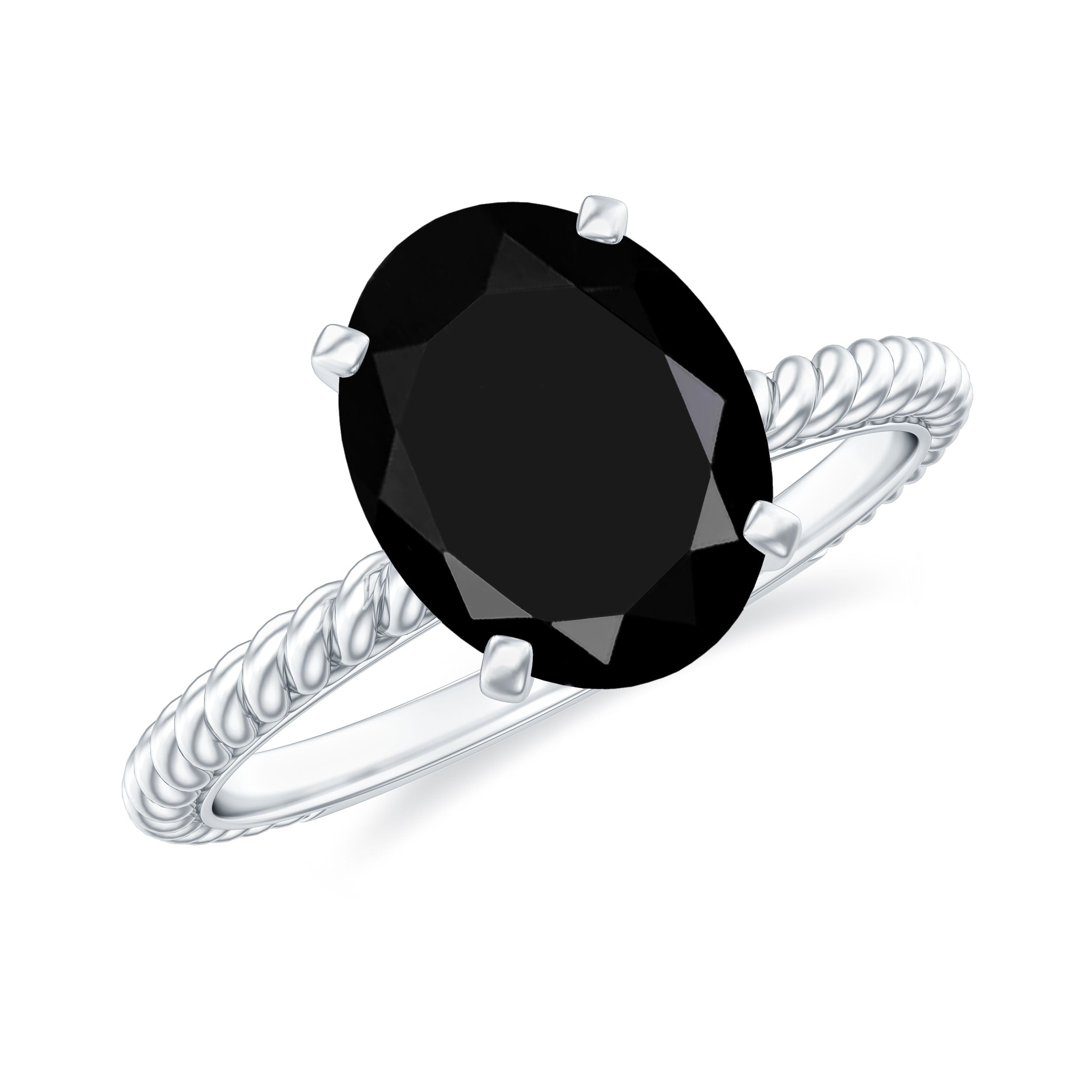 Embrace the enchanting beauty of this Solitaire Ring adorned with a captivating oval created black diamond. The twisted rope shank gracefully embraces the centerpiece, while Surprise Diamond adds a touch of dazzling brilliance. With its exquisite design, this ring exudes elegance and allure that is simply irresistible. Let it grace your finger and captivate all with its undeniable charm.