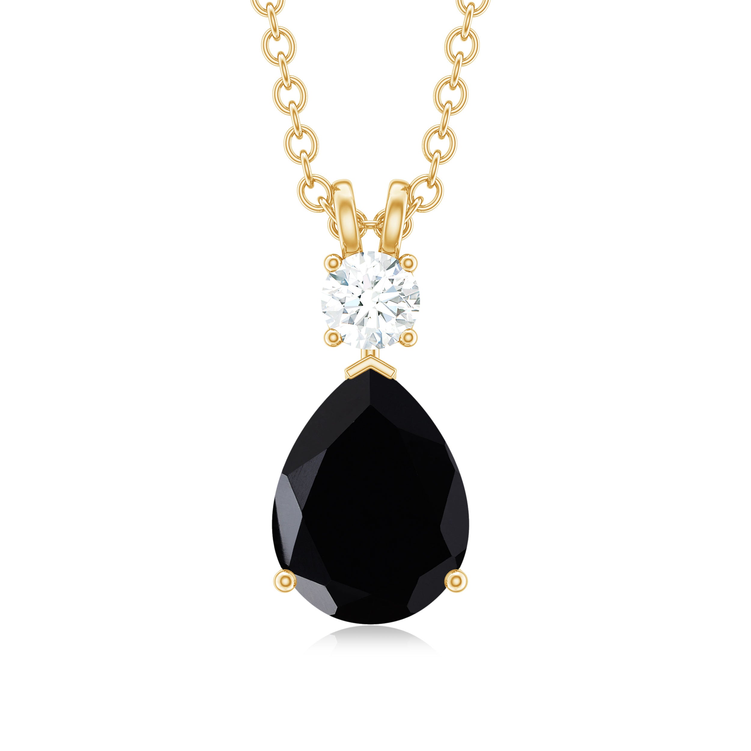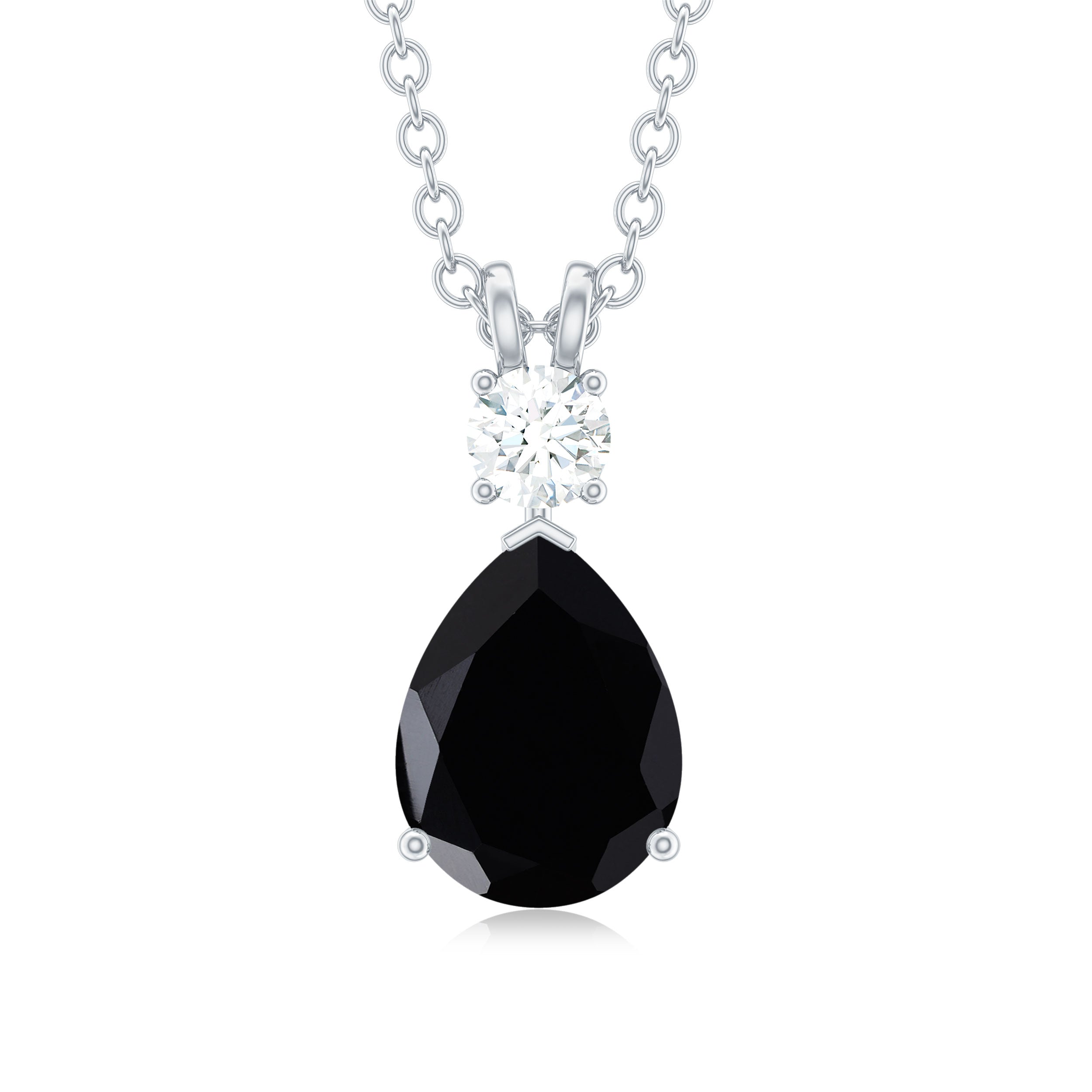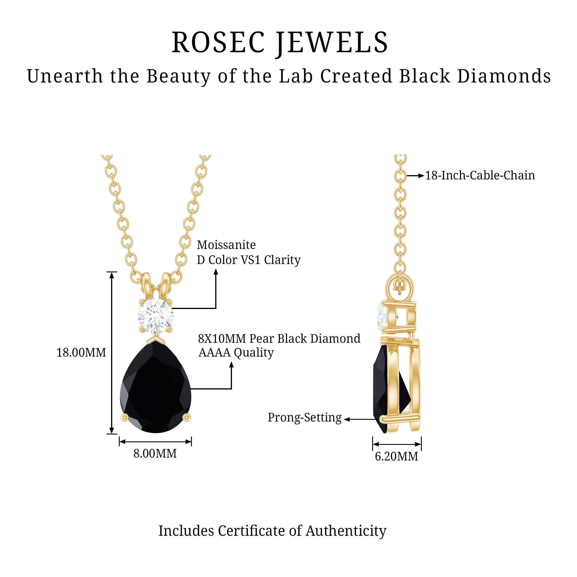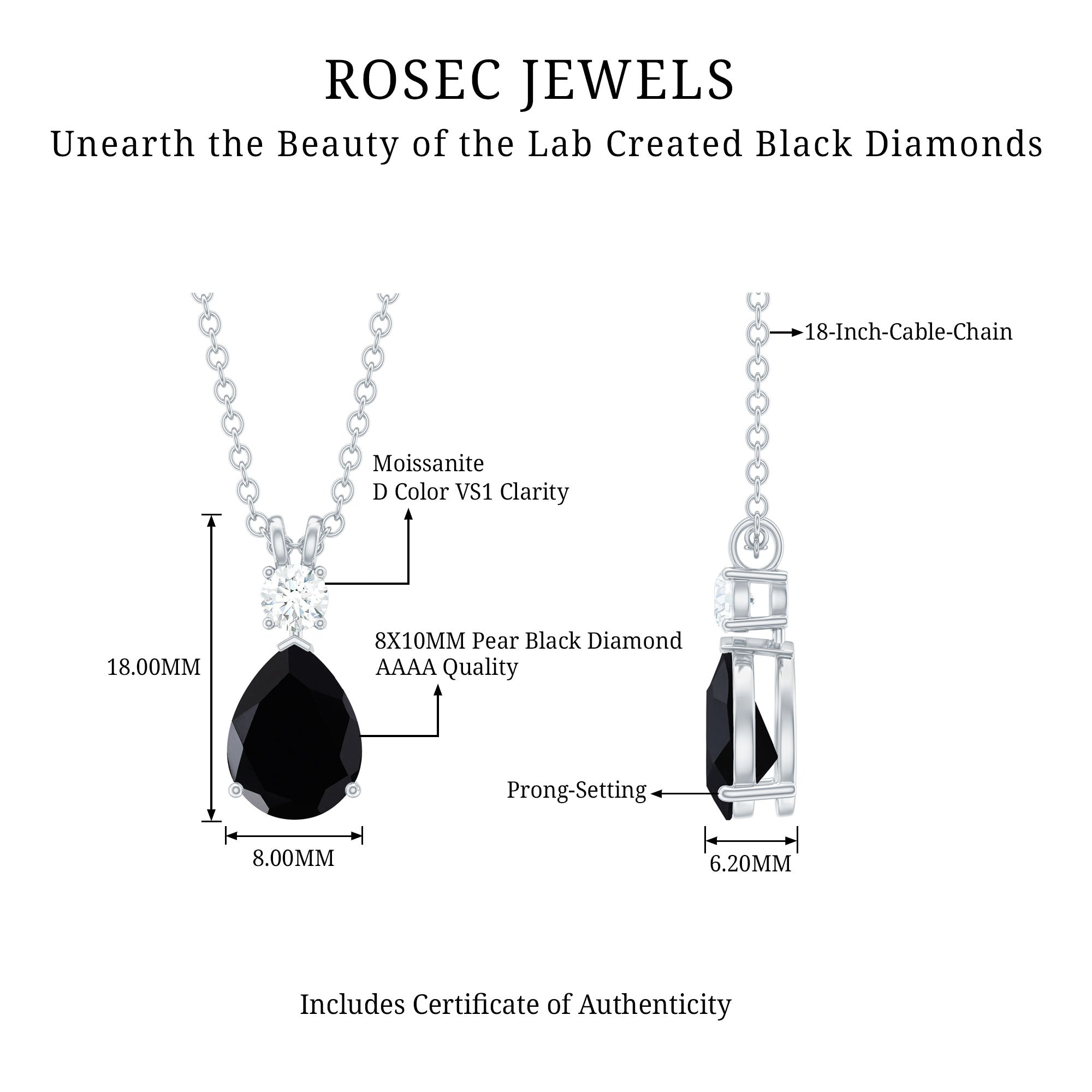 A Teardrop Pendant Necklace is an exquisite token of your love which will captivate her heart with its mesmerizing sparkle. Featuring Pear Shaped Lab Created Black Diamond secured in Prong Setting while dainty Round Moissanite studded on the top. With its unique shine, the Created Black Diamond Pendant will effortlessly enhance your casual or evening attire. A lovely birthday gift for someone special.