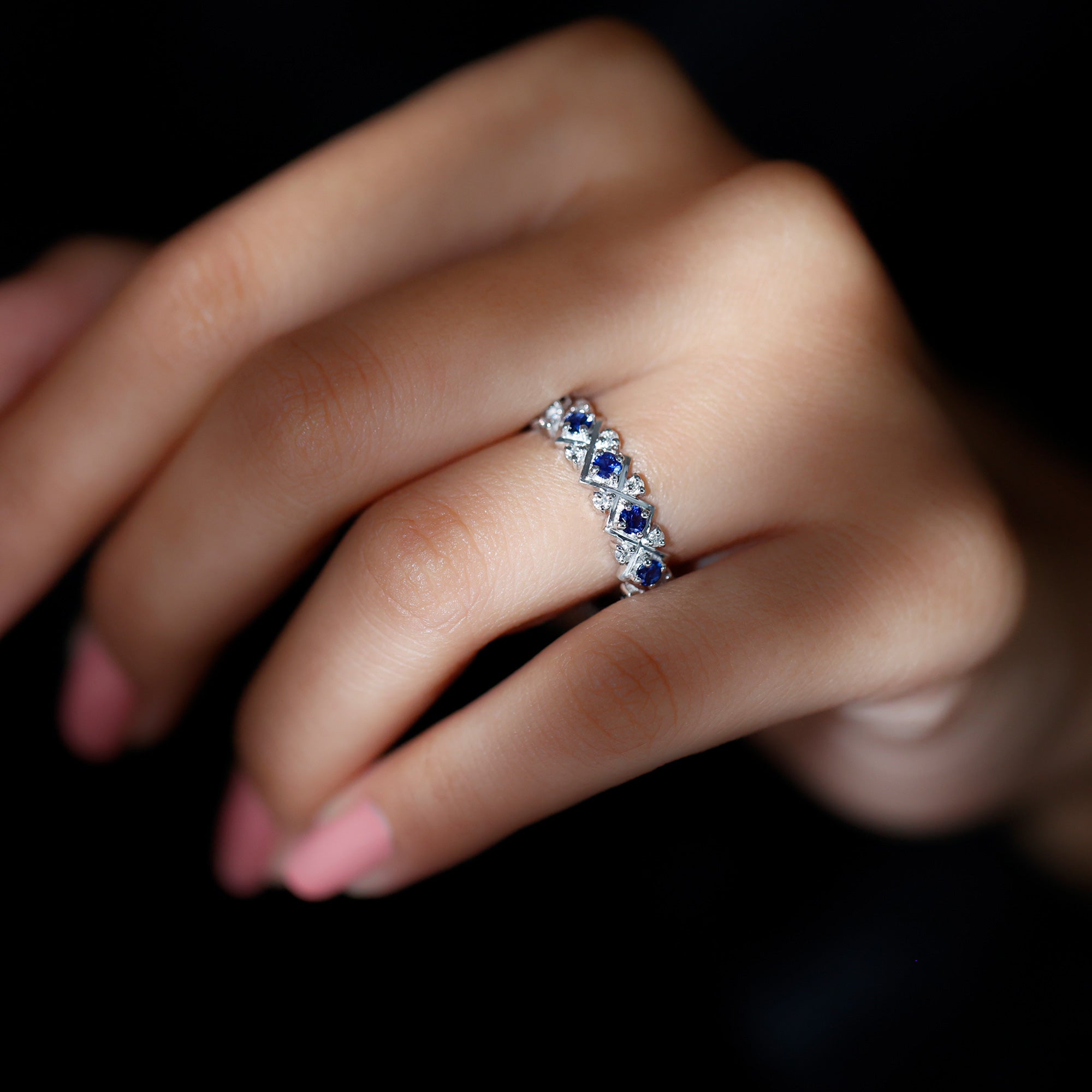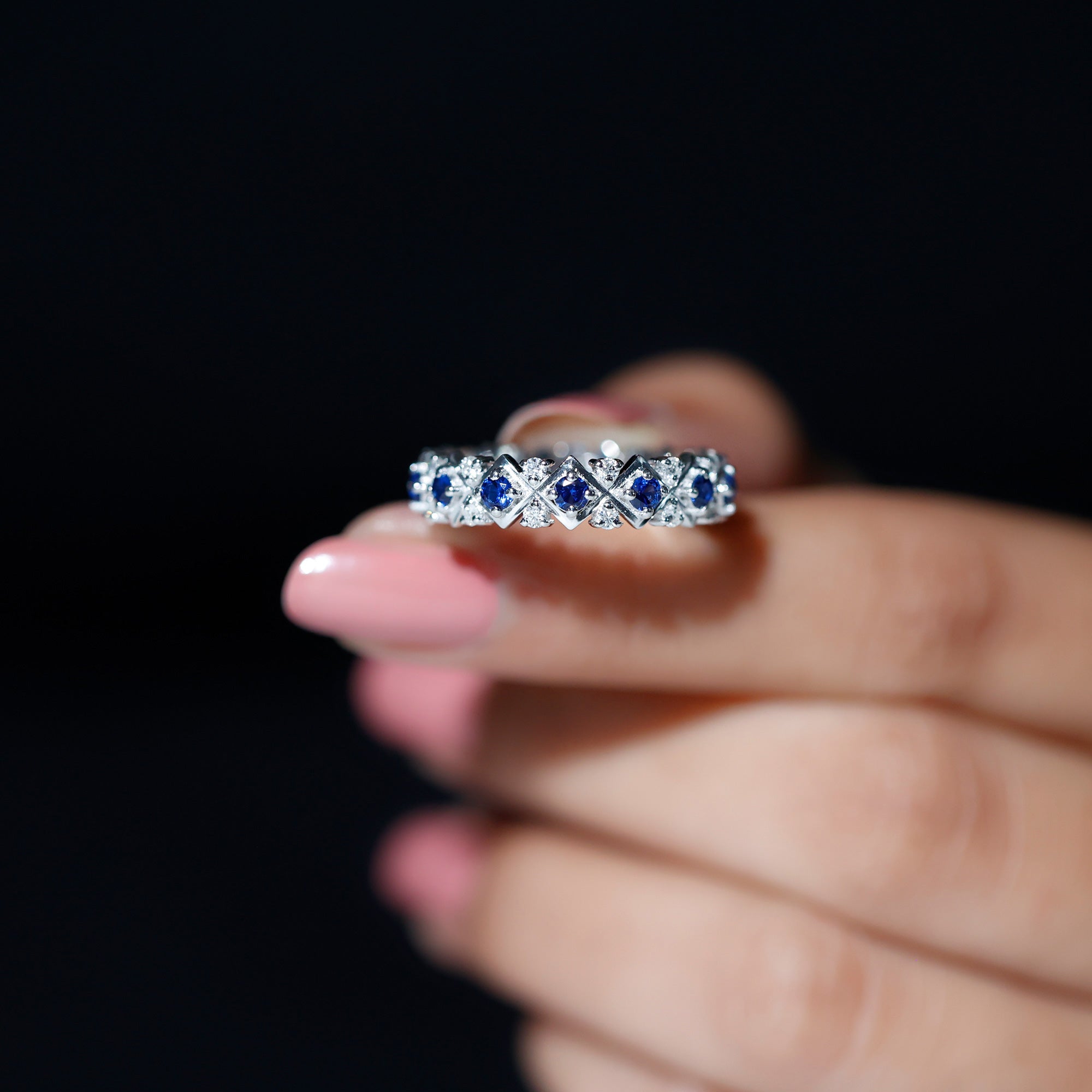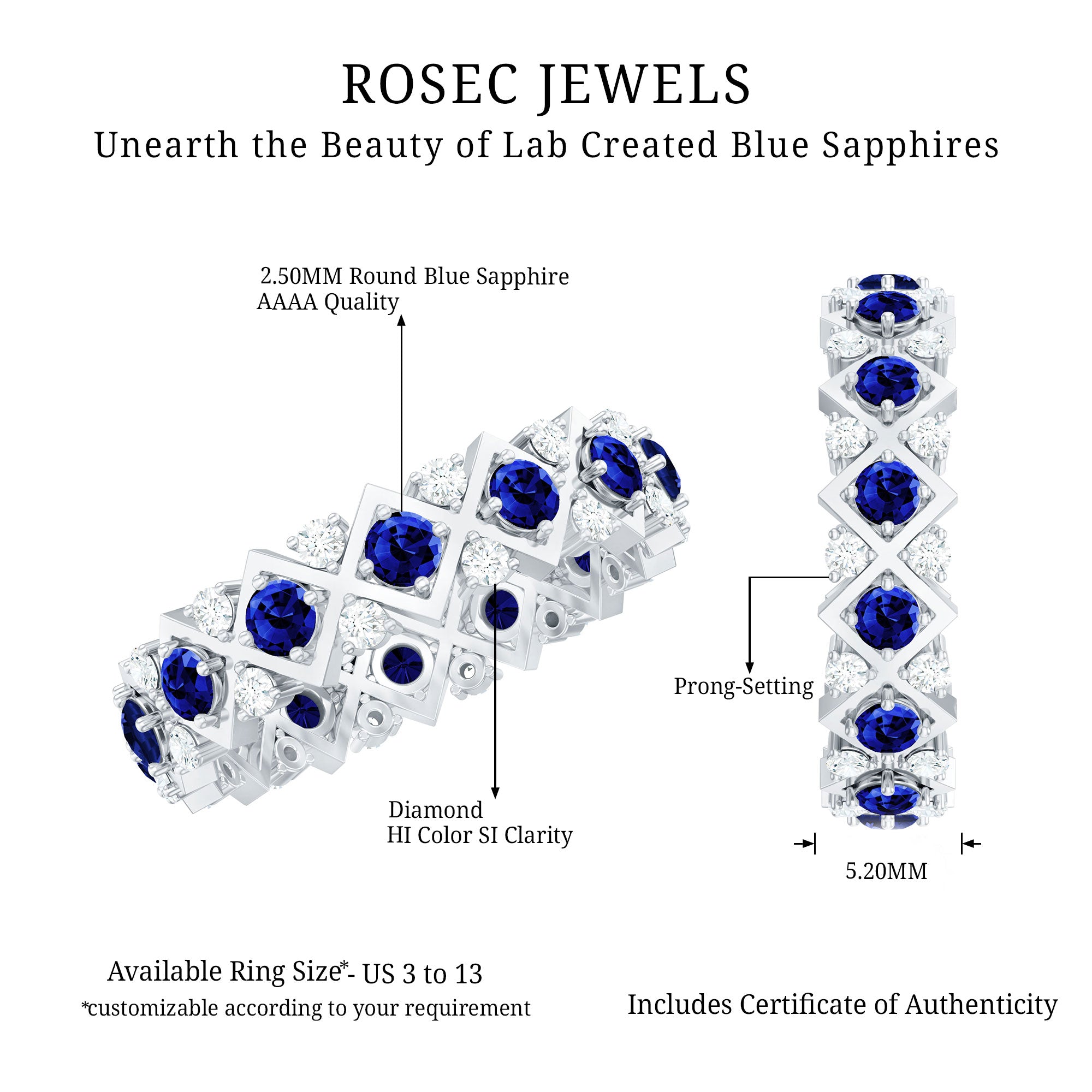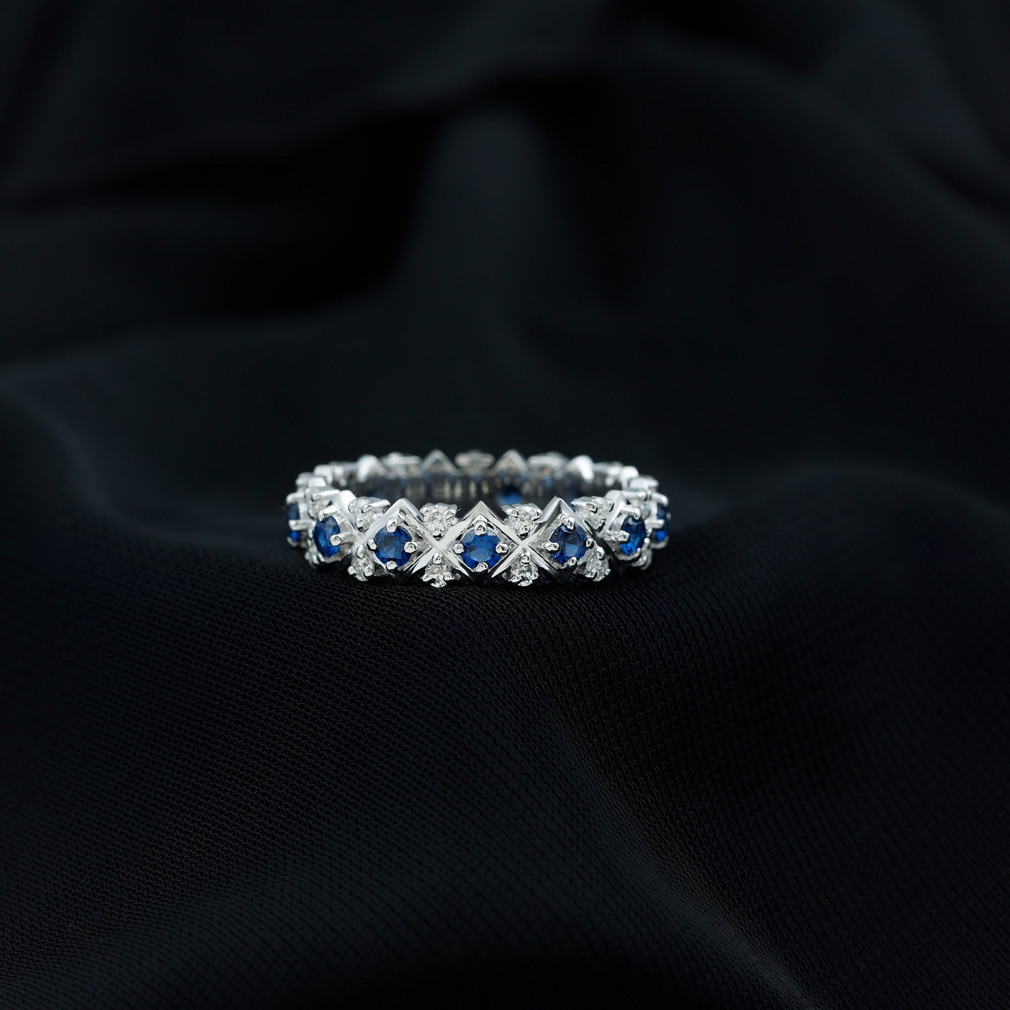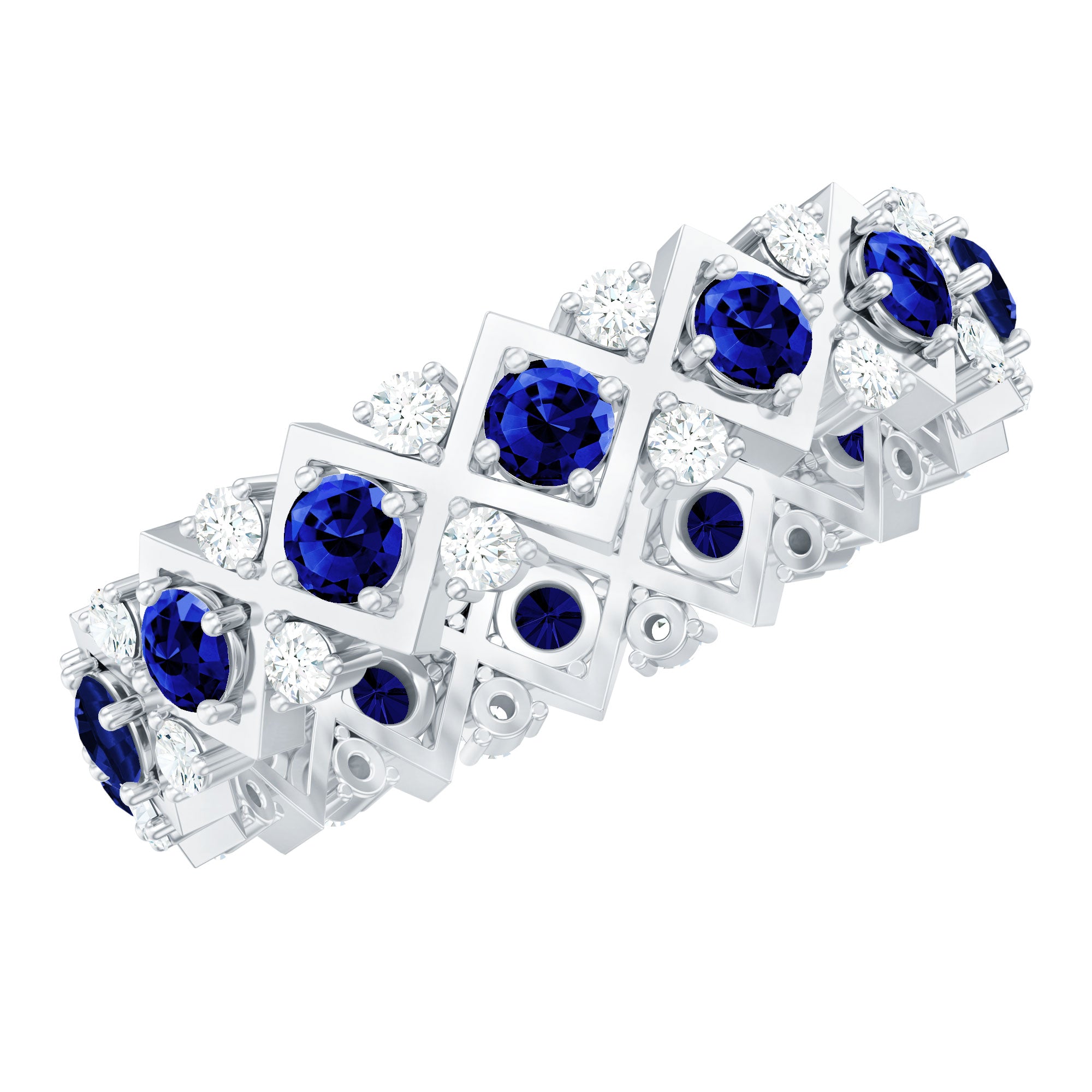 Created Blue Sapphire and Diamond Full Eternity Band Ring