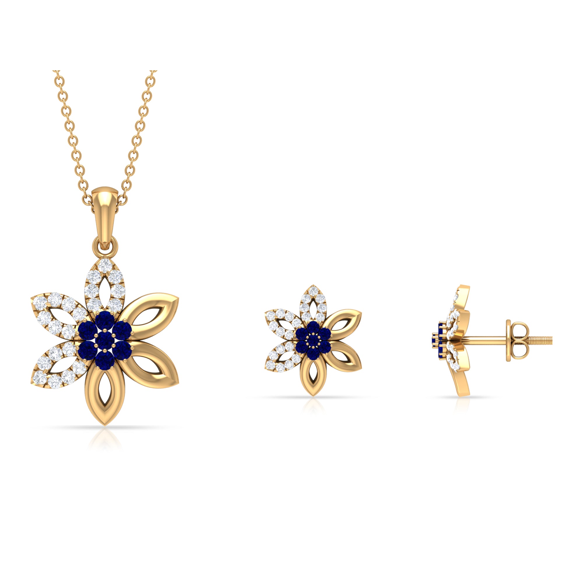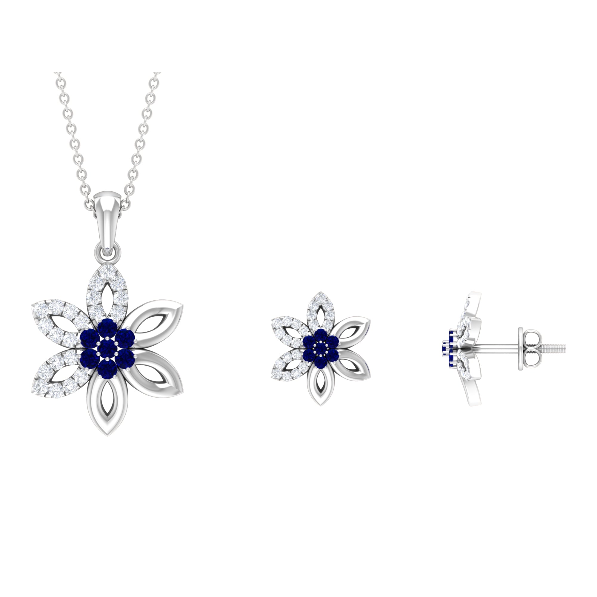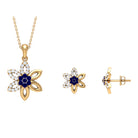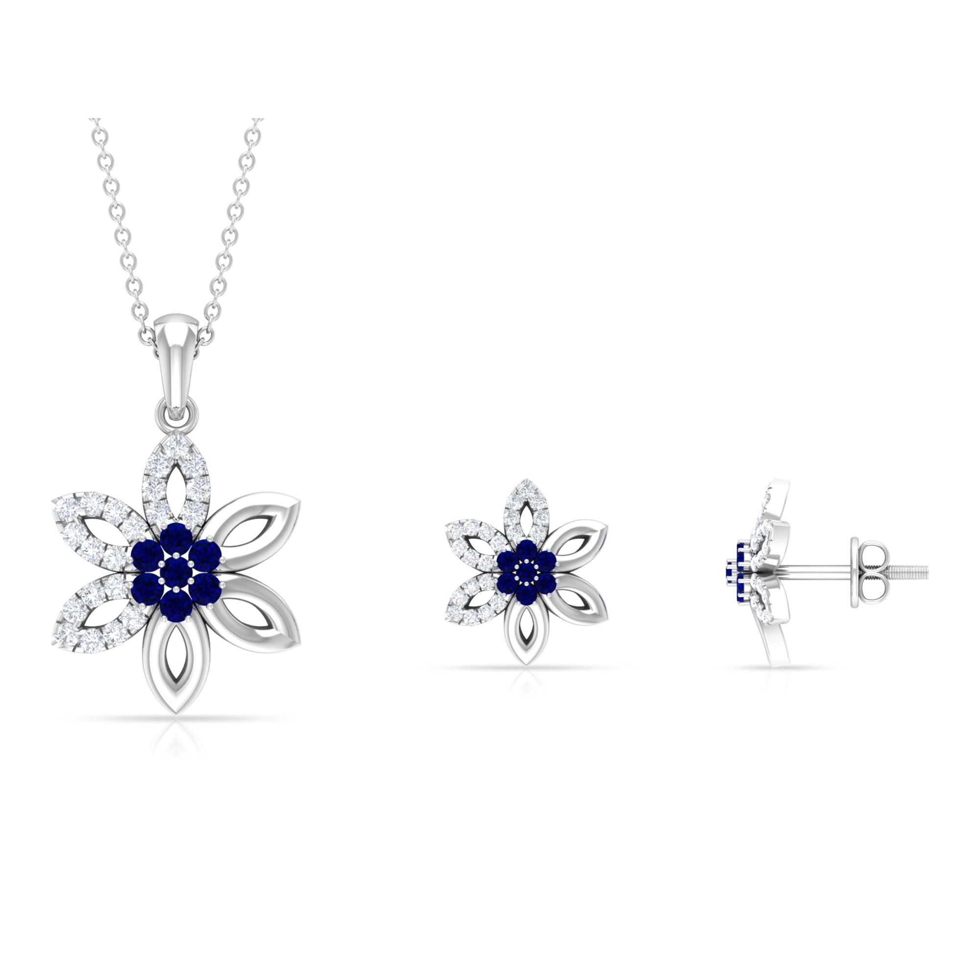 Created Blue Sapphire Flower Jewelry Set with Diamond
