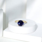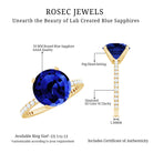Created Blue Sapphire Solitaire Ring with Diamond Side Stones