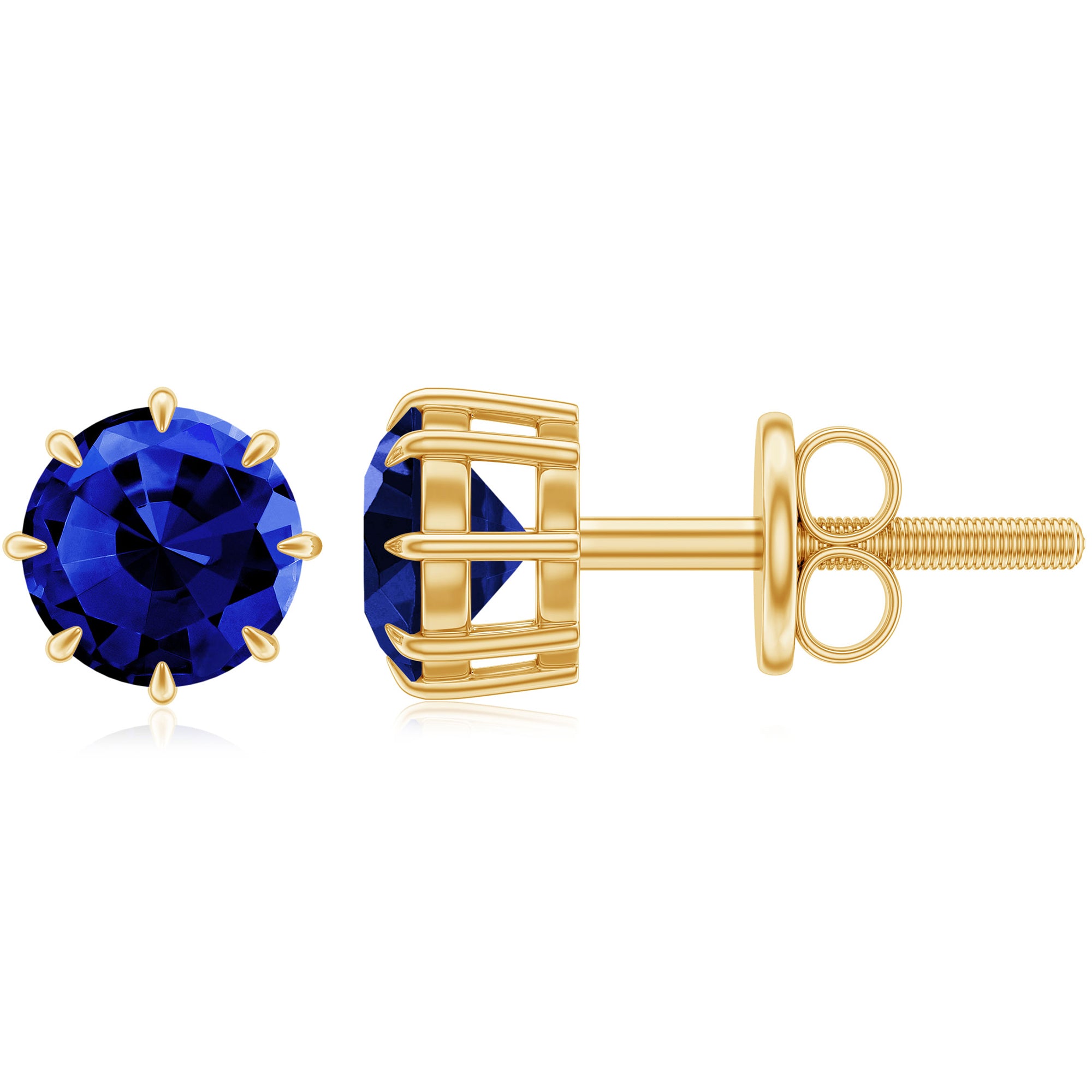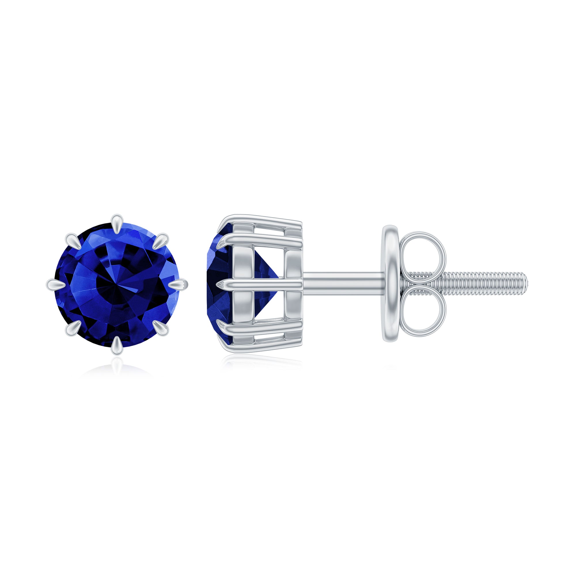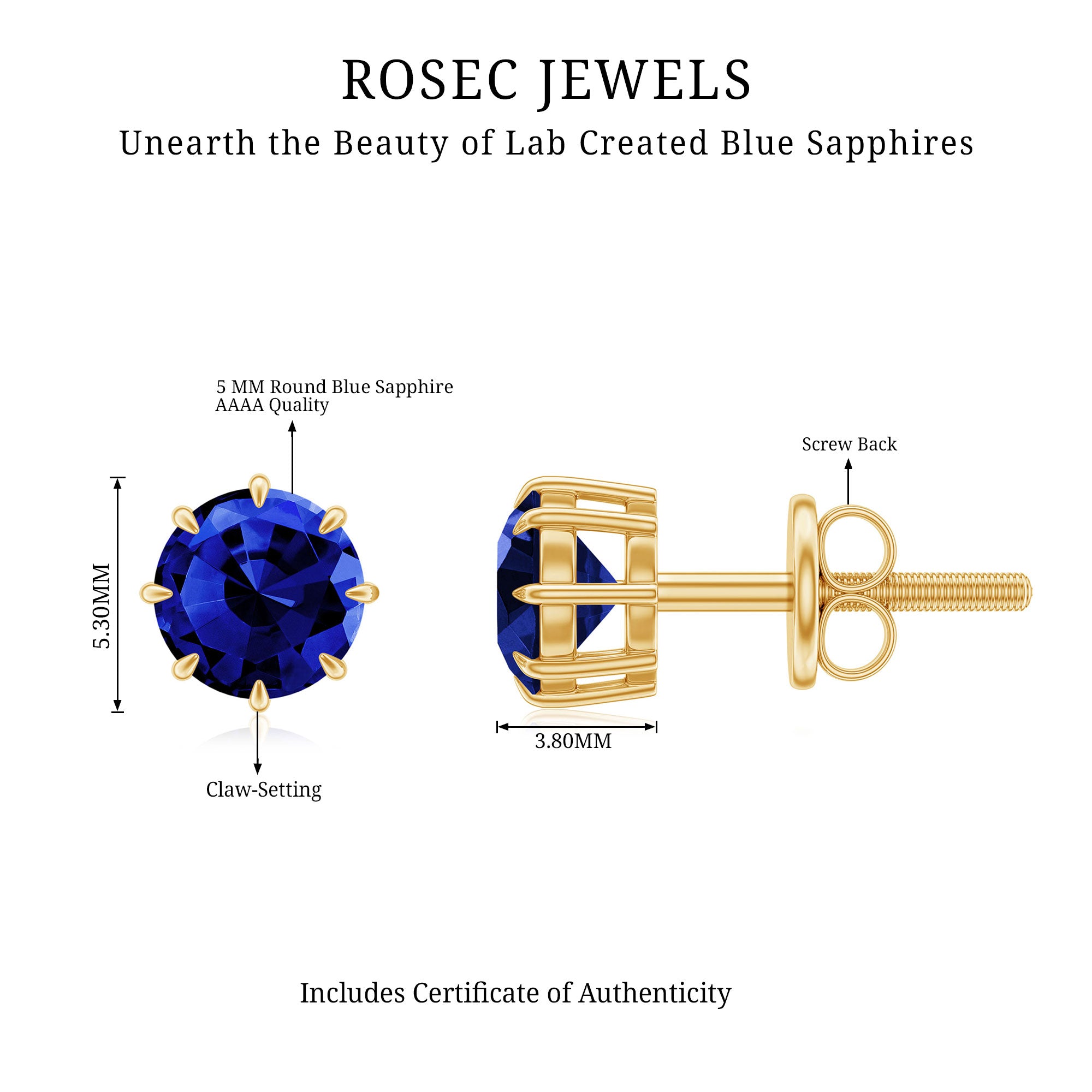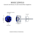 Lab Created Round Blue Sapphire Solitaire Stud Earrings in Claw Setting