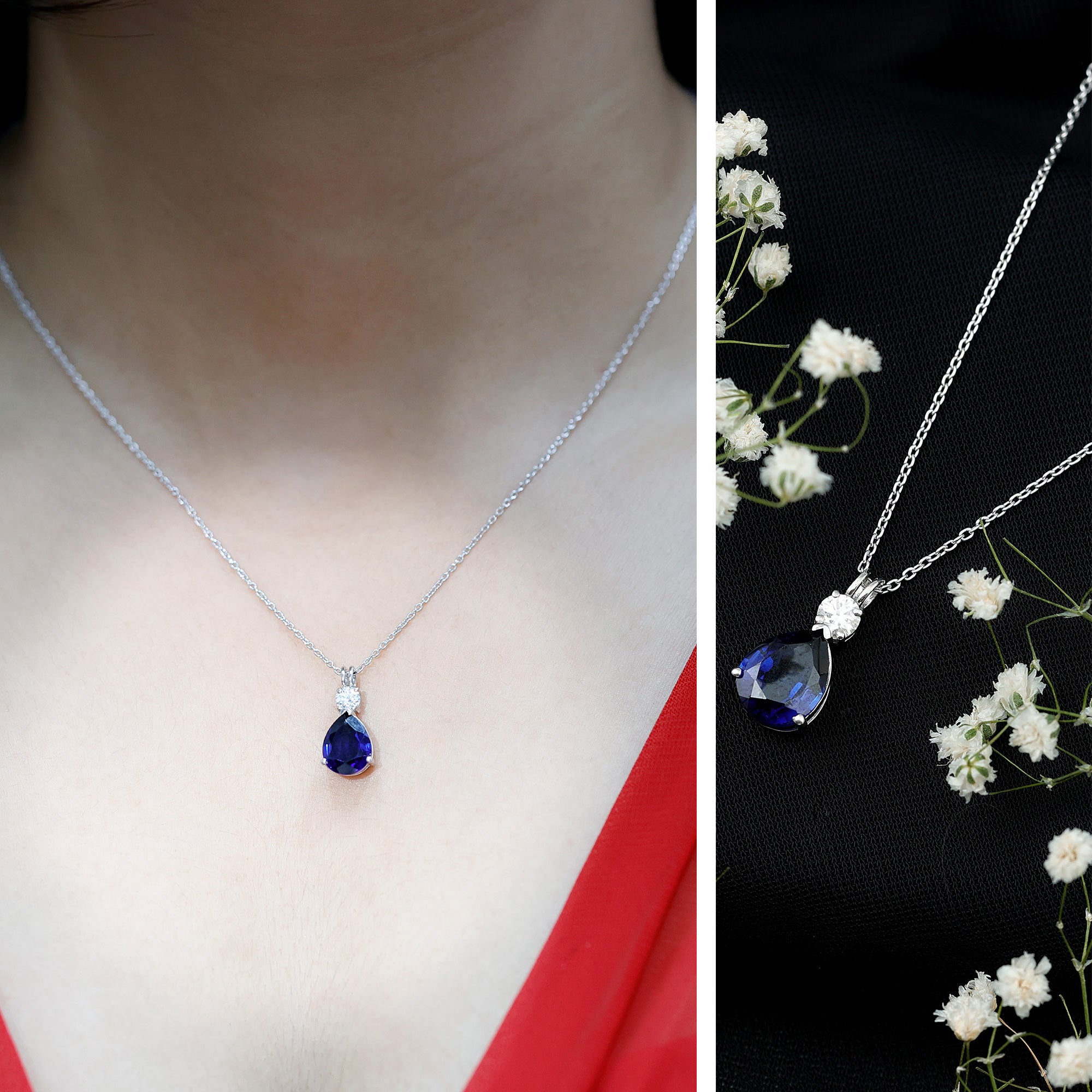 - The Created Sapphire Pendant has been gracefully crafted in Solid Metal. Flaunt the Teardrop Necklace with your beautiful outfits effortlessly to create unique looks.
