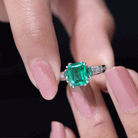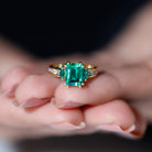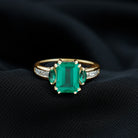Created Emerald Cocktail Engagement Ring with Diamond Side Stones